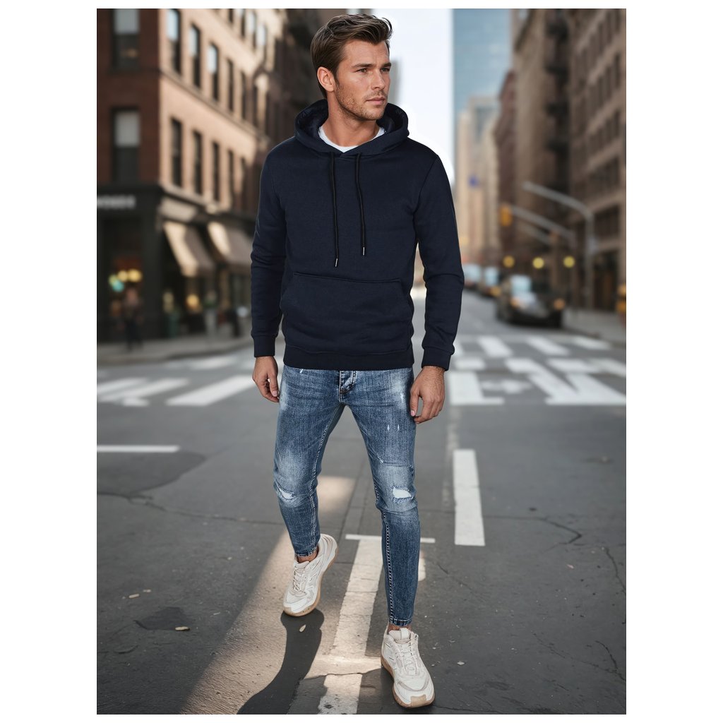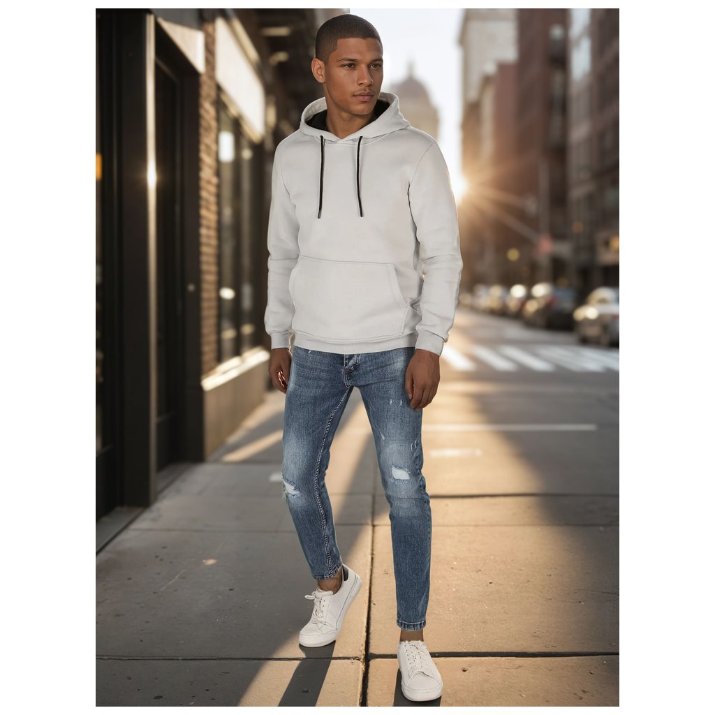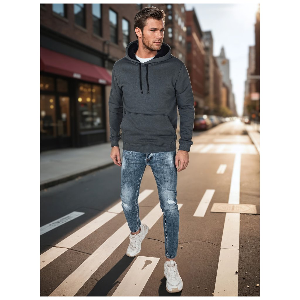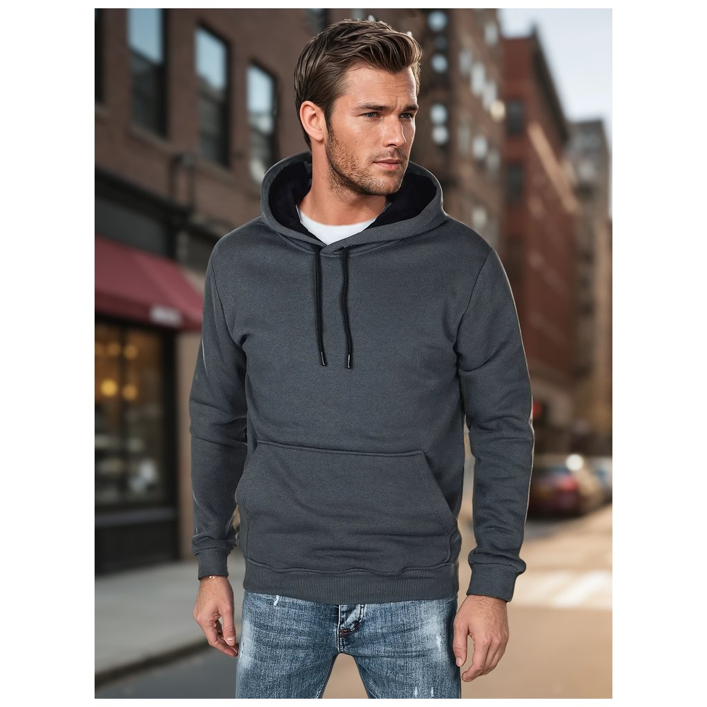 Tato klasická pánská mikina s kapucí je nezbytností pro každodenní styling. Je vyrobena z měkké látky a poskytuje celodenní pohodlí. Klokaní kapsa dodává praktičnost, zatímco žebrované manžety a lem zajišťují lichotivý střih. Ideální k džínům a sportovnímu vzhledu.