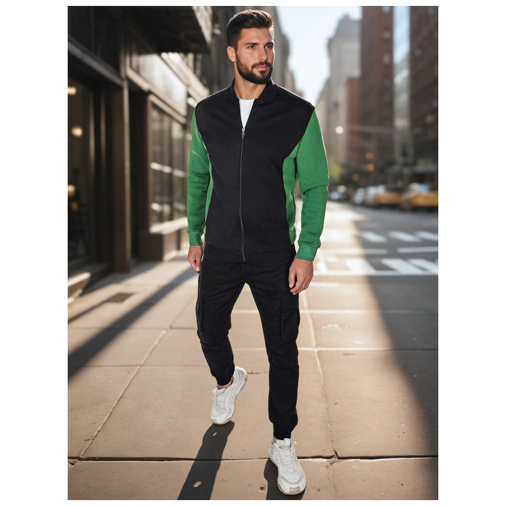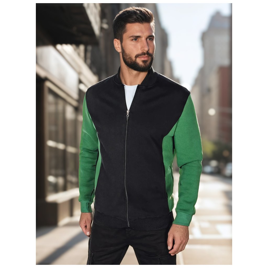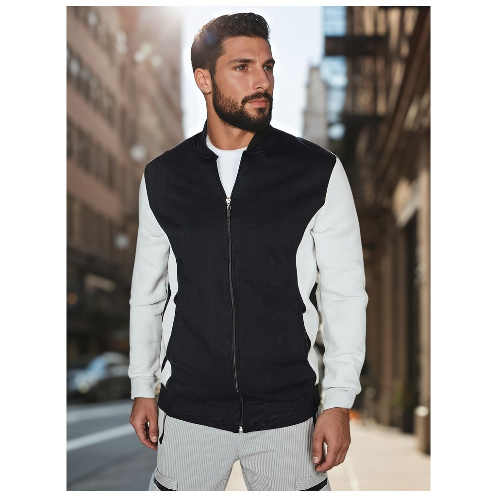 Tato pánská mikina na zip kombinuje pohodlí s moderním designem. Kontrastní rukávy jí dodávají dynamický vzhled a praktické boční kapsy poskytují úložný prostor pro drobnosti. Elastické manžety na lemu a rukávech zajišťují perfektní střih.