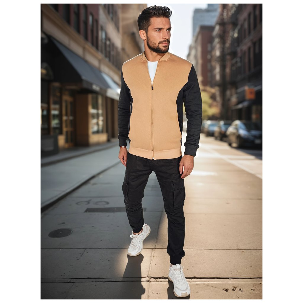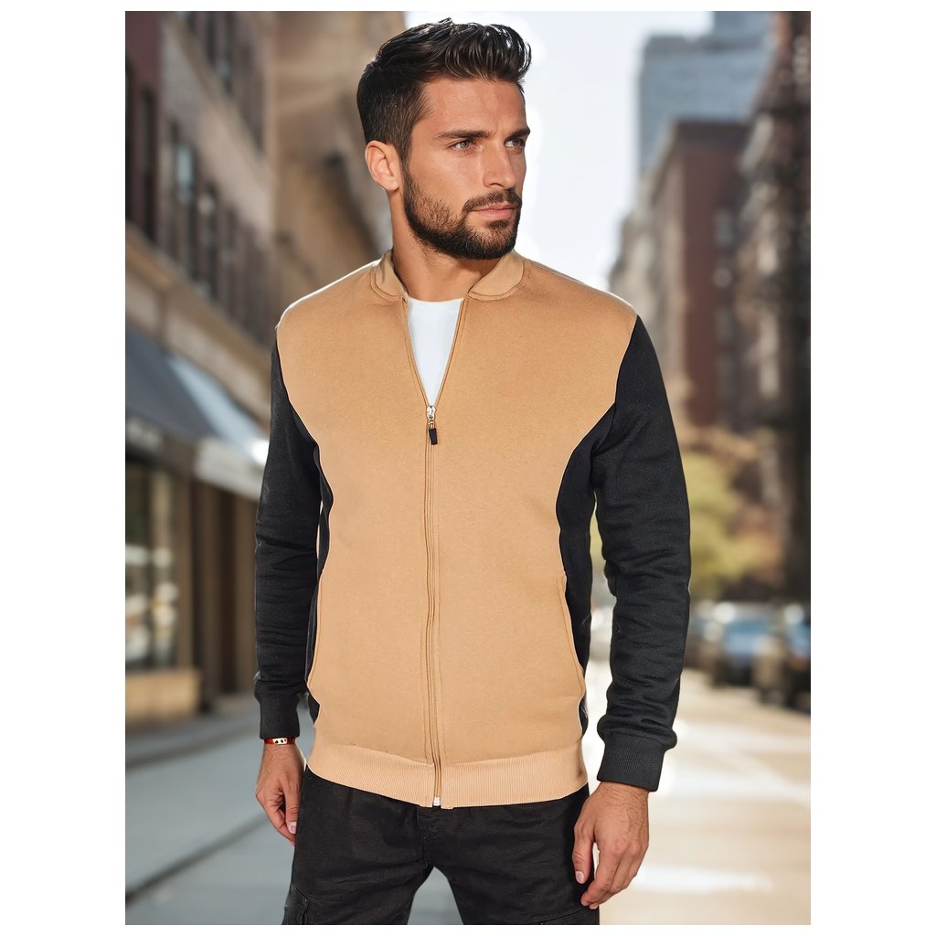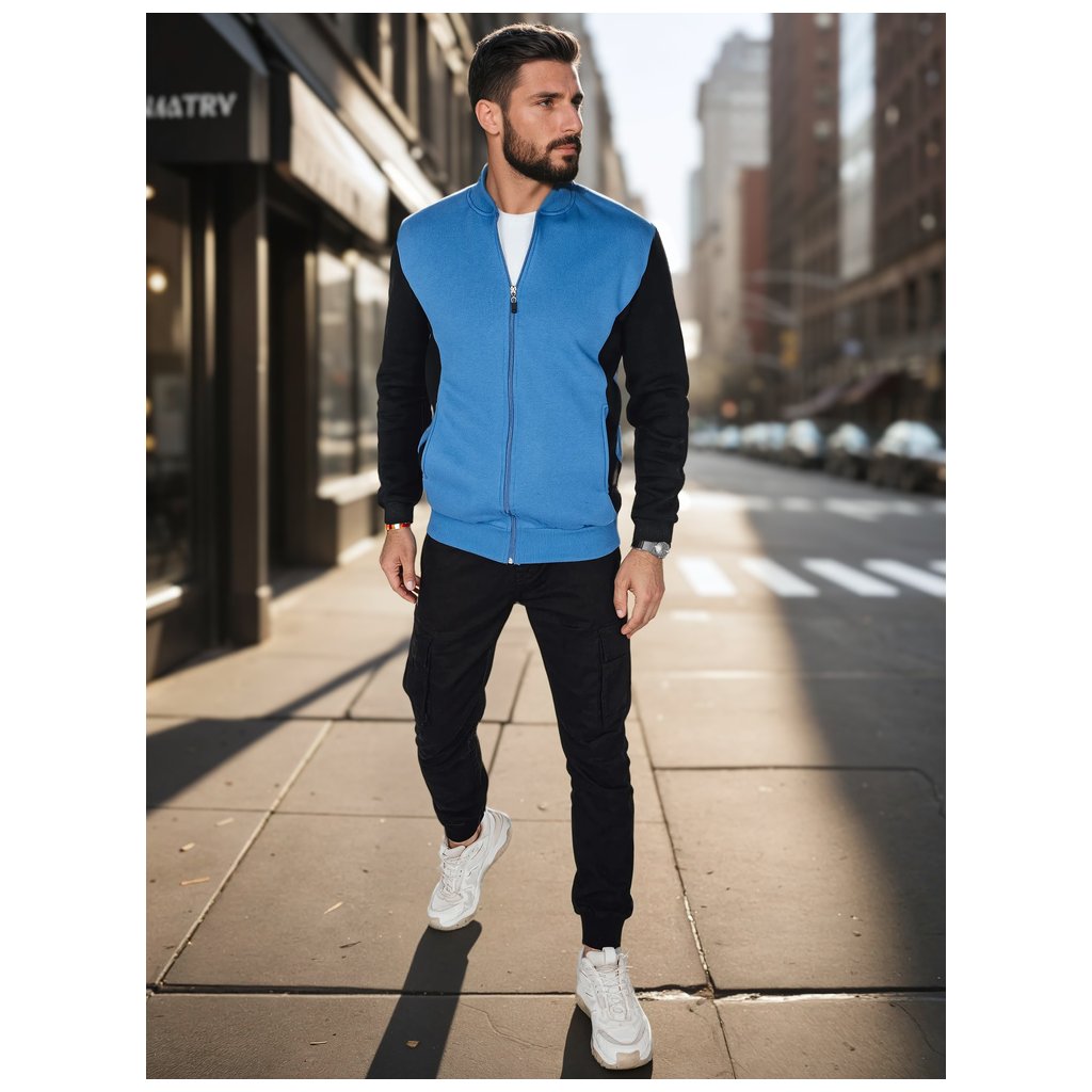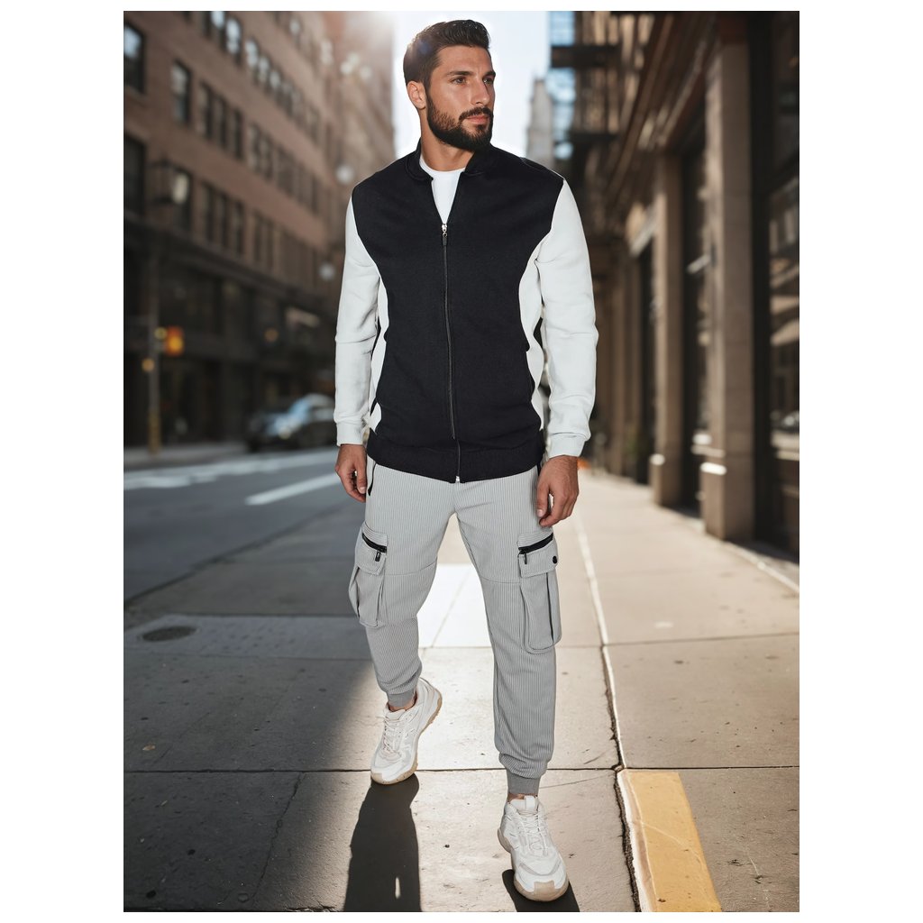 Tato pánská mikina na zip kombinuje pohodlí s moderním designem. Kontrastní rukávy jí dodávají dynamický vzhled a praktické boční kapsy poskytují úložný prostor pro drobnosti. Elastické manžety na lemu a rukávech zajišťují perfektní střih.