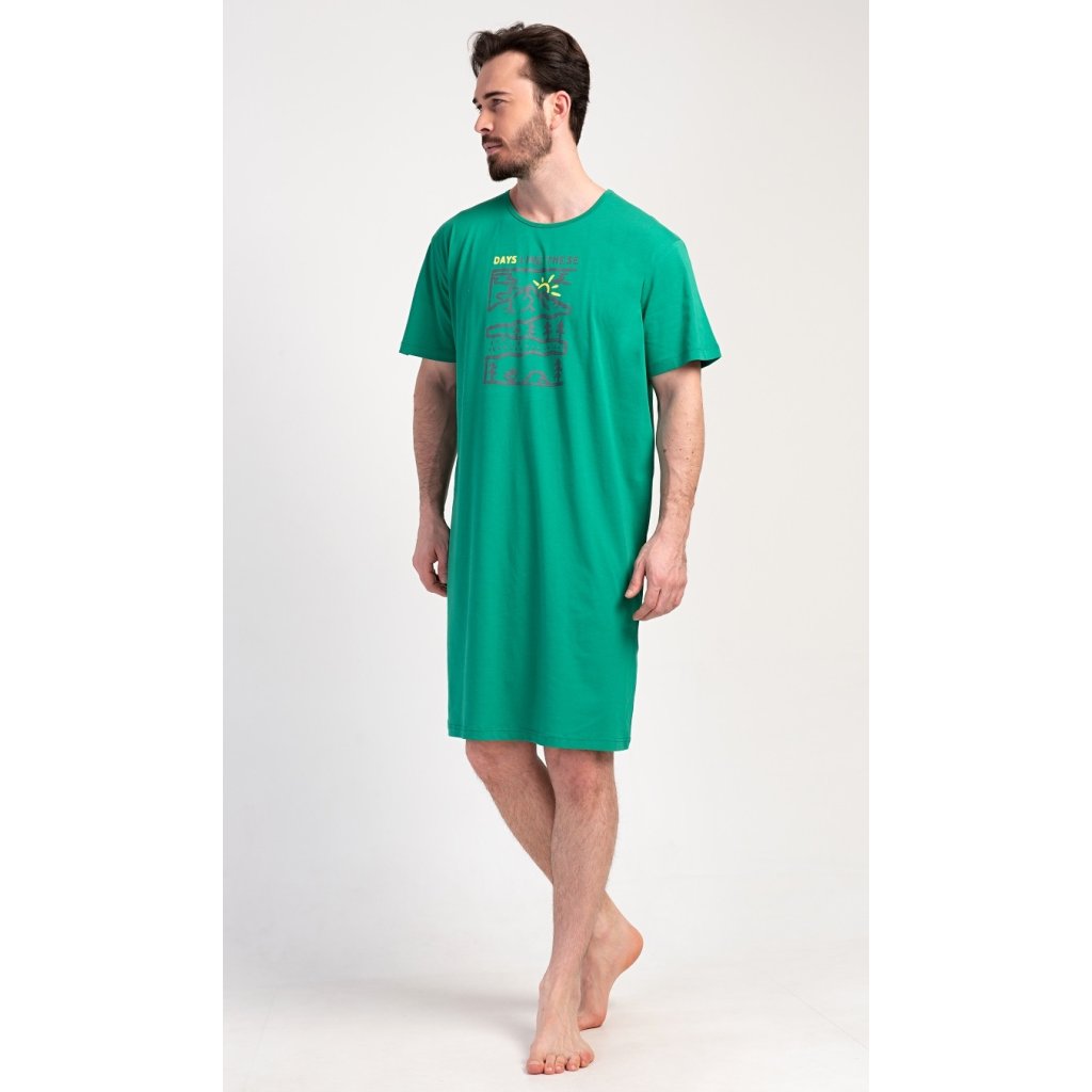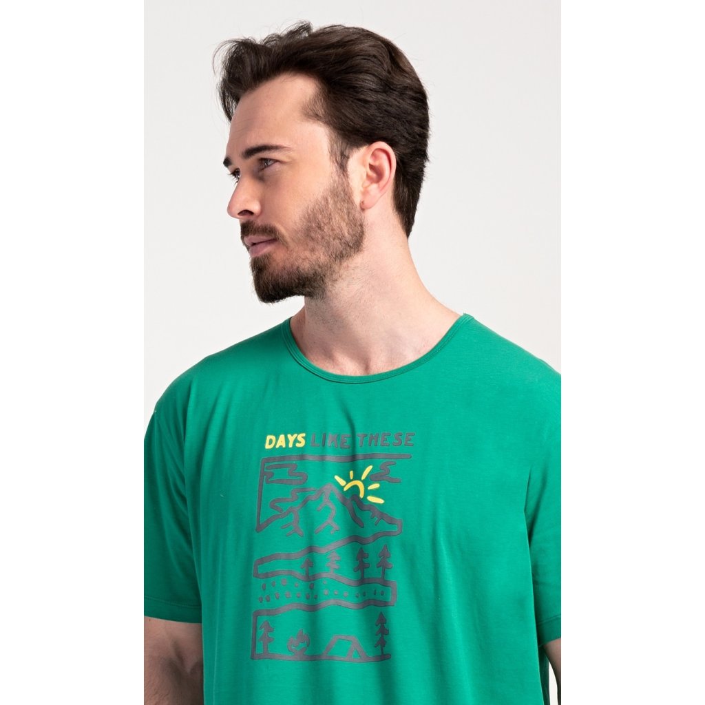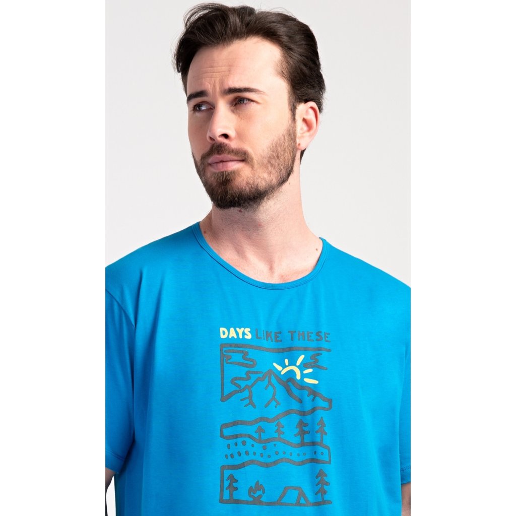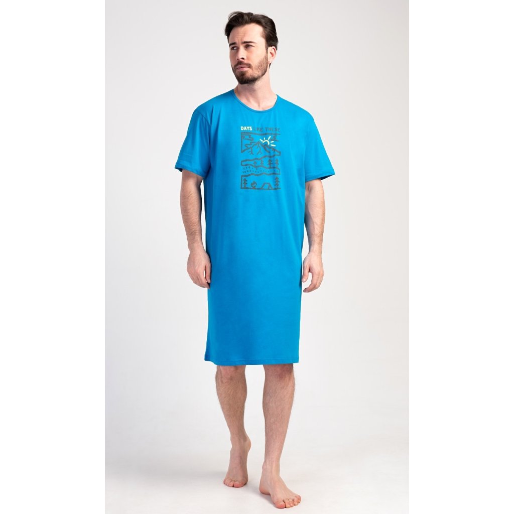 Pánská bavlněná noční košile s krátkým rukávem Outdoor. Jednobarevná pánská noční košile s kulatým výstřihem má na hrudi obrázek lesnaté krajiny a nápis 'Days like these'. Tato košile je vhodným dárkem pro všechny milovníky turistiky. Použitý materiál je příjemný a poddajný na dotek. Obsah bavlny je 100%.