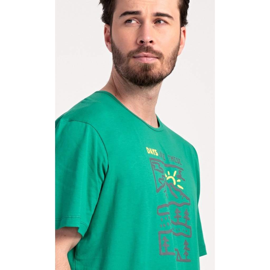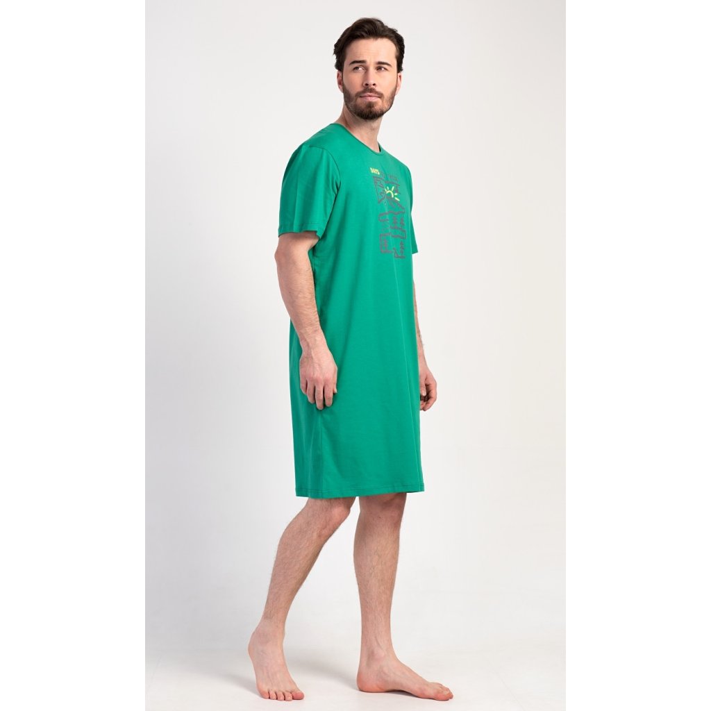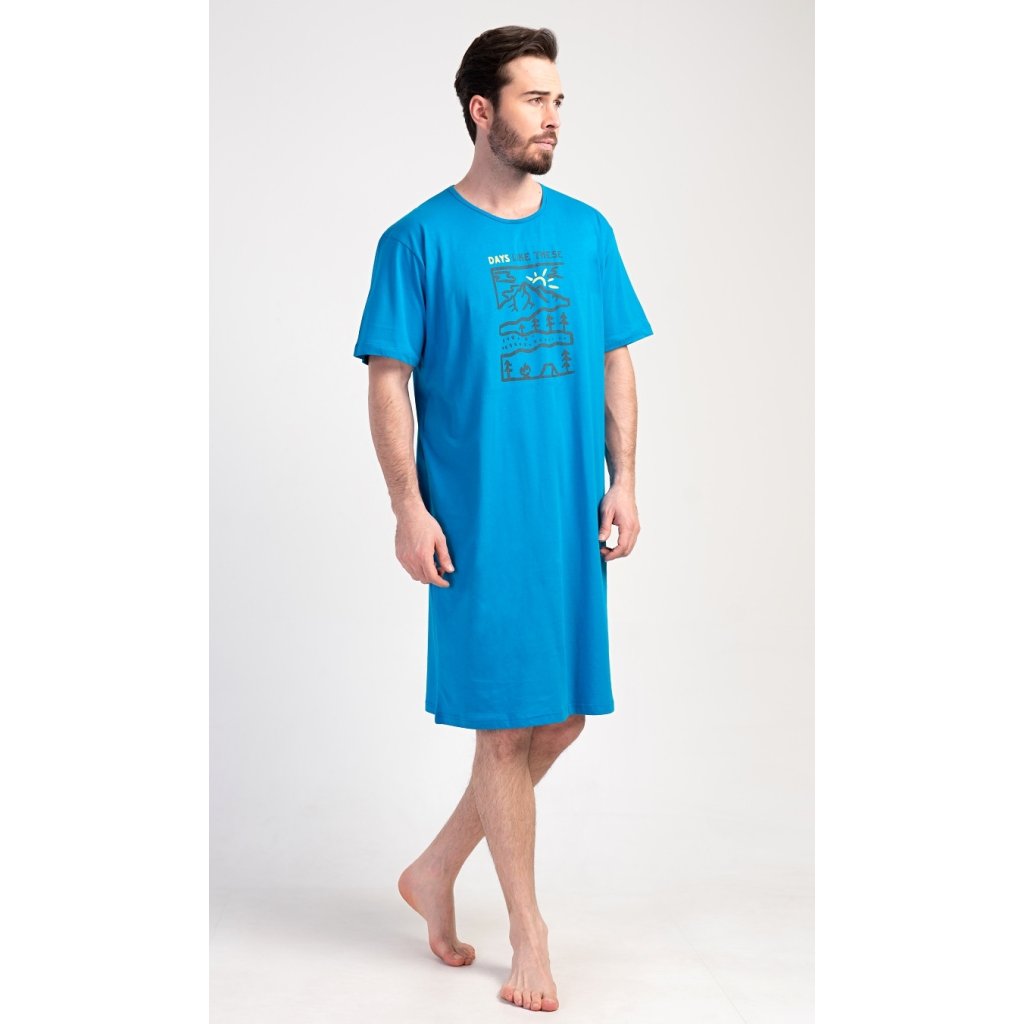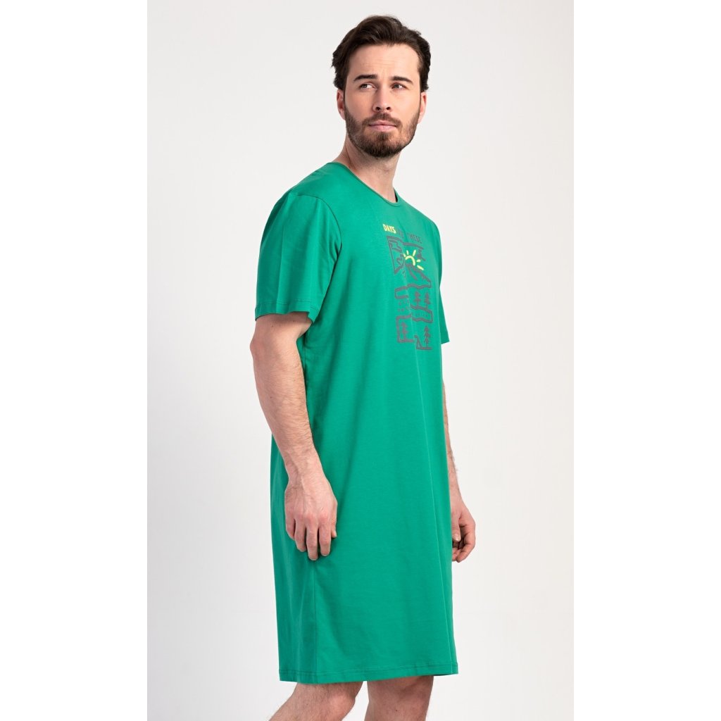 Pánská bavlněná noční košile s krátkým rukávem Outdoor. Jednobarevná pánská noční košile s kulatým výstřihem má na hrudi obrázek lesnaté krajiny a nápis 'Days like these'. Tato košile je vhodným dárkem pro všechny milovníky turistiky. Použitý materiál je příjemný a poddajný na dotek. Obsah bavlny je 100%.