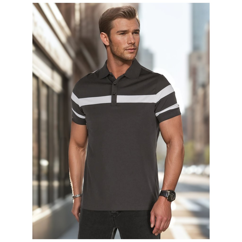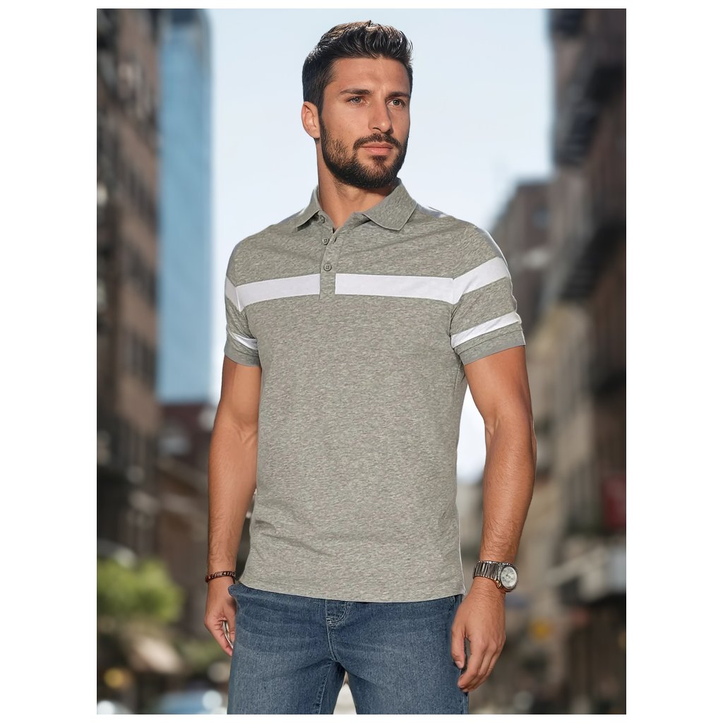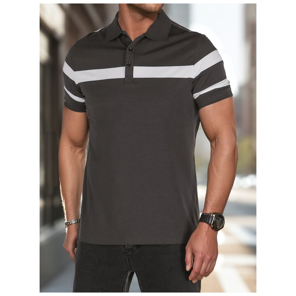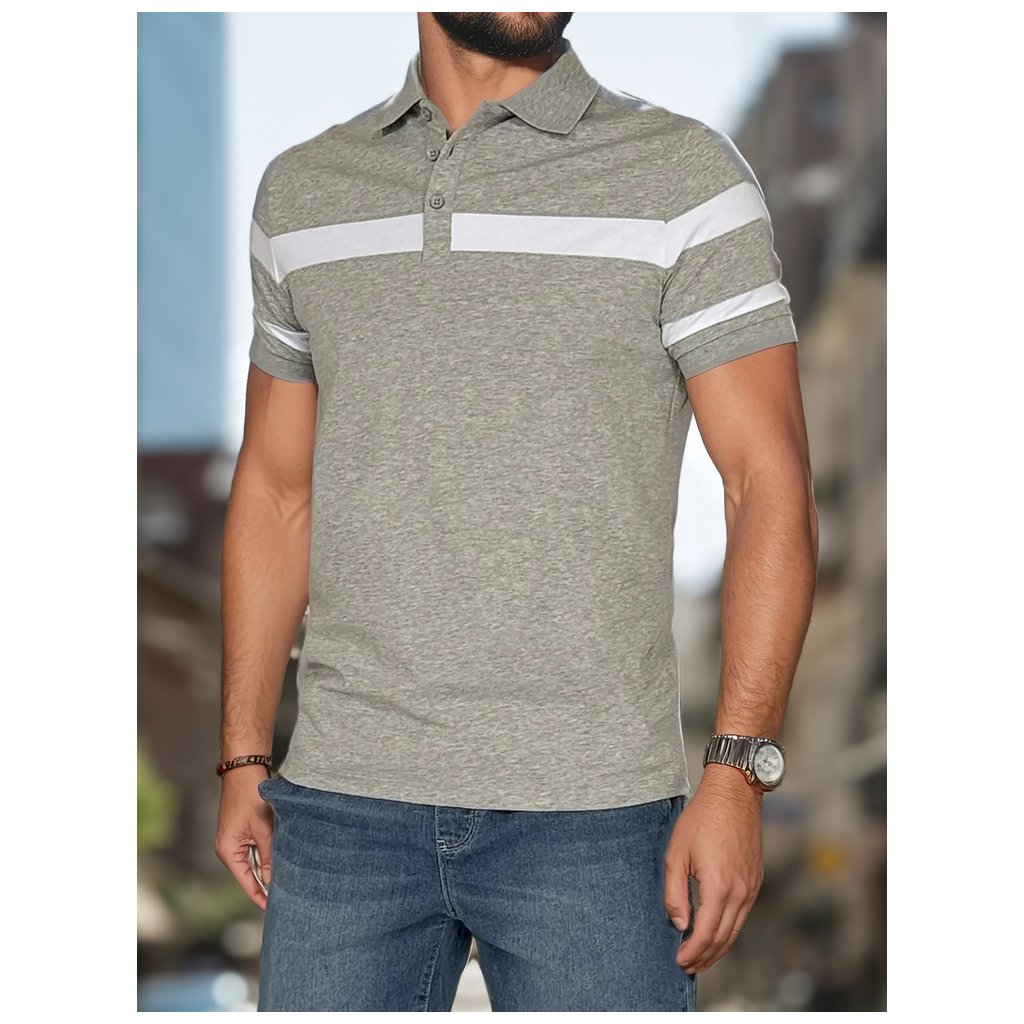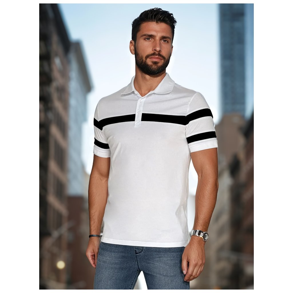 Toto pánské polo tričko s krátkým rukávem je všestrannou volbou pro každodenní nošení. Klasický límec na knoflíky dodává eleganci, zatímco ozdobný proužek vpředu a na rukávech rozbíjí jednoduchý design. Pohodlný střih umožňuje volný pohyb a lehká tkanina je ideální pro teplejší jarní dny.