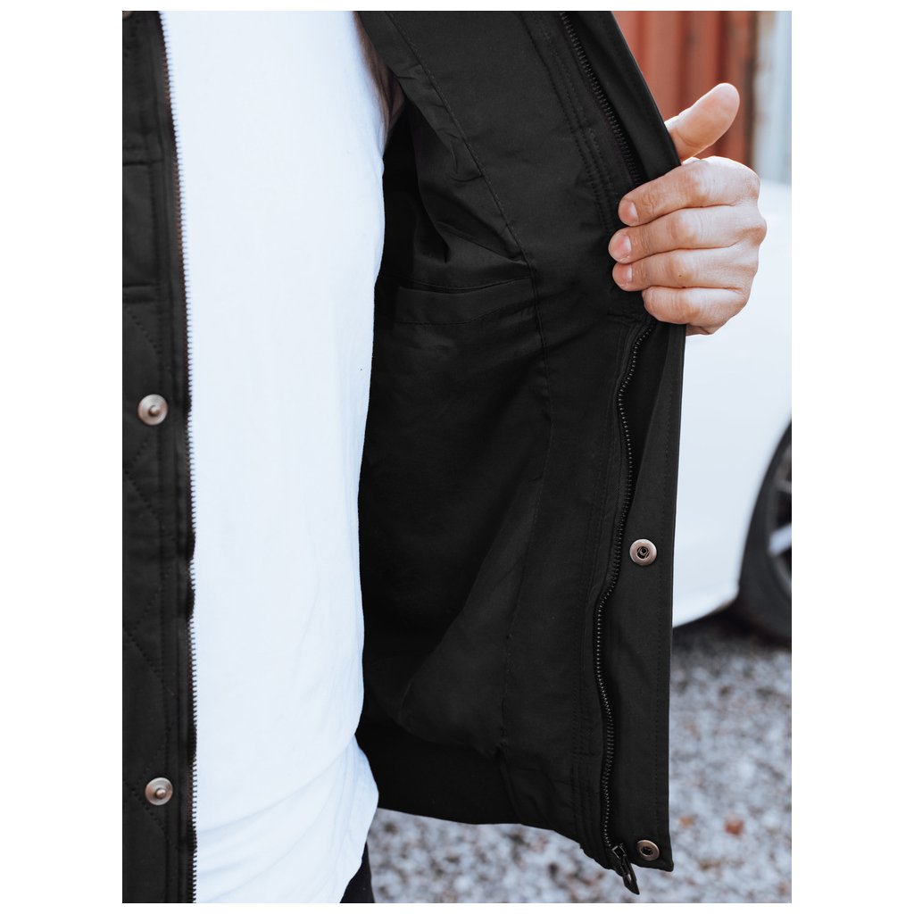Tato pánská bunda pro střední sezónu má moderní střih a zapínání na zip a druky. Je podšitá a lehce vycpaná pro chladnější dny. Kapuce je odnímatelná a nastavitelná pomocí druků. Čtyři vnější kapsy a jedna vnitřní kapsa poskytují praktičnost, zatímco žebrované manžety a lem zajišťují pohodlné nošení.