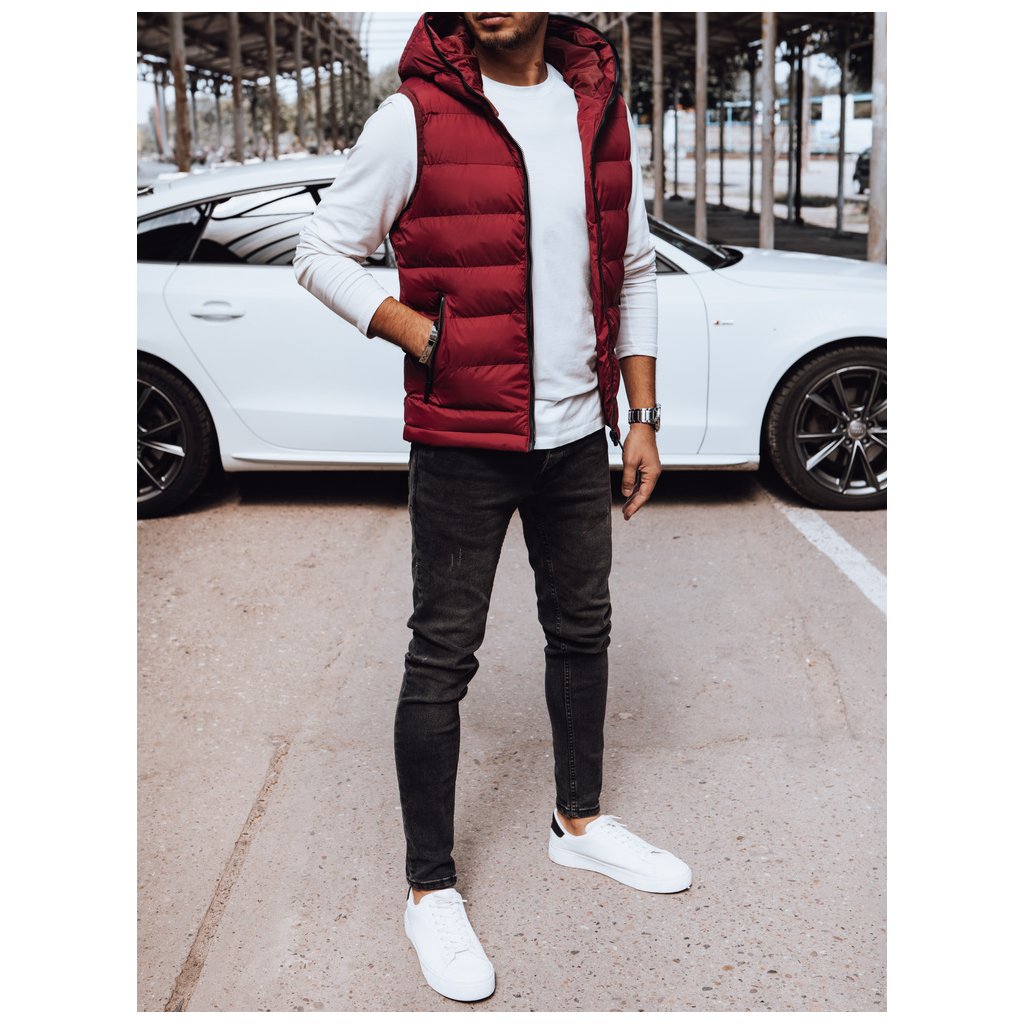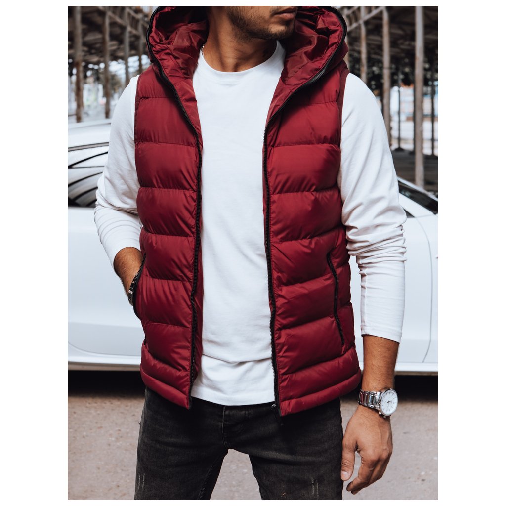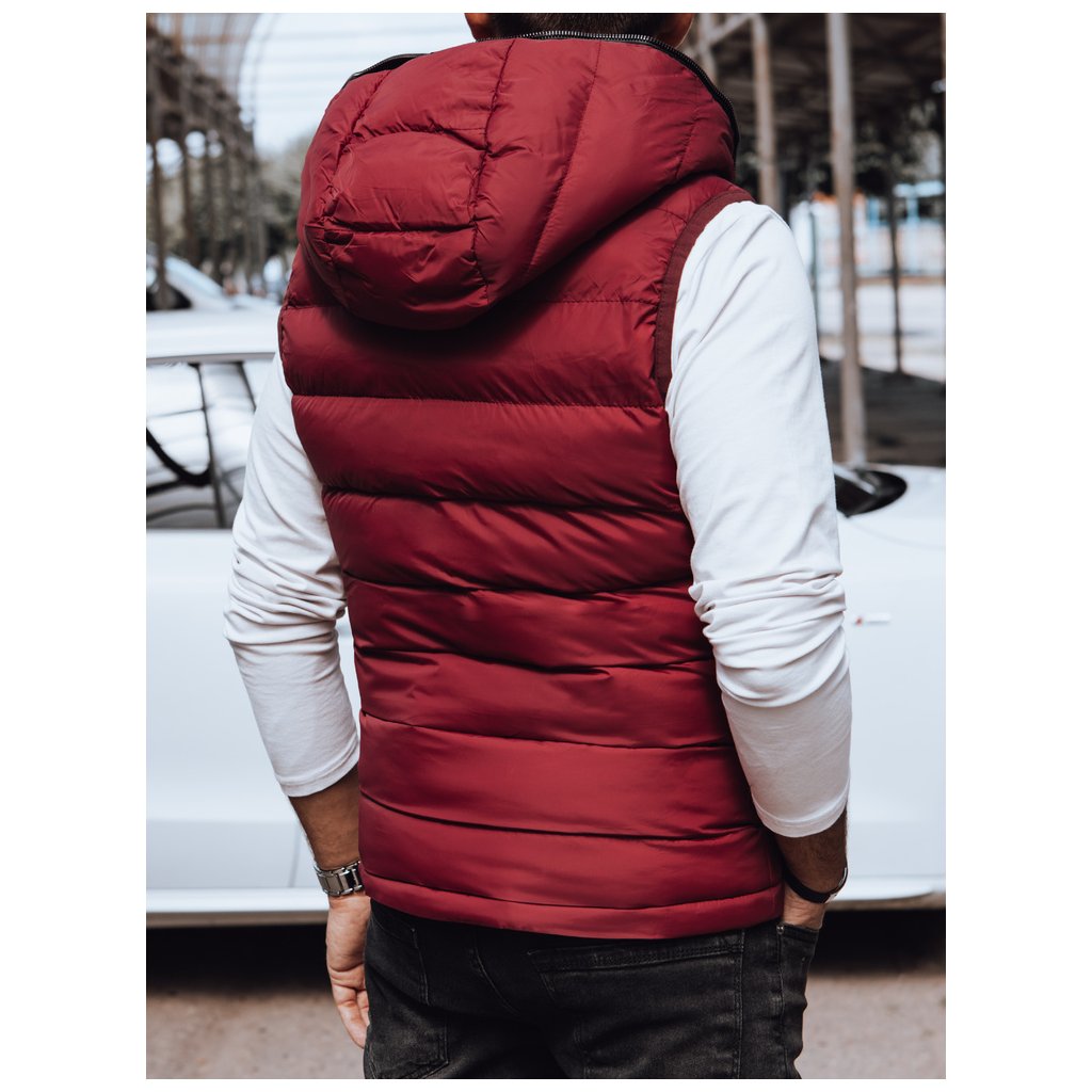 Pánská prošívaná vesta s kapucí červená Dstreet TX4742 - výprodej