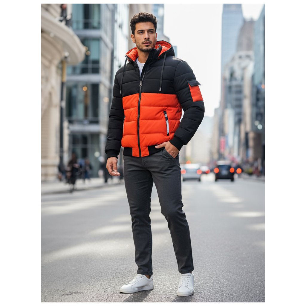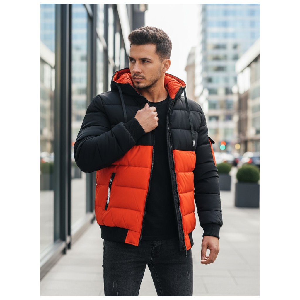 Pánská zimní prošívaná bunda TX5097 oranžová a černá
