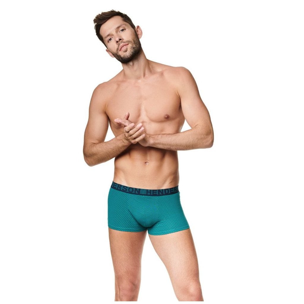 Pánské boxerky od značky Henderson. Boxerky jsou vyrobeny z kvalitní bavlny s příměsí elastanu, mají jemnou pásovou gumu, na které je cedulka s nápisem Henderson.