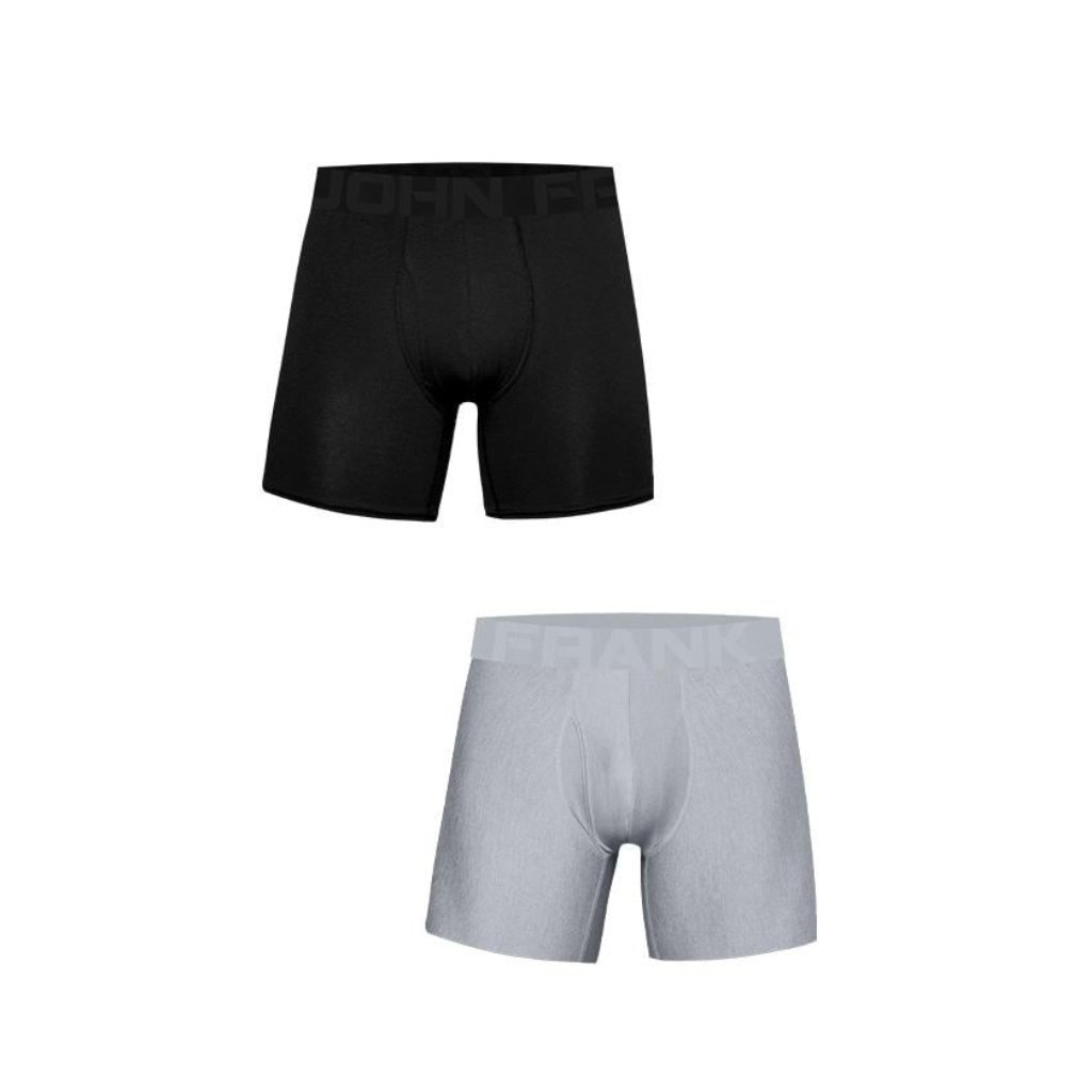 Pánské boxerky značky John Frank. Boxerky jsou z materiálu s vysokým obsahem polyesteru, který je prodyšný a rychleschnoucí. Boxerky jsou jednobarevné, jsou tenké a dobře se nosí pod přiléhavé oblečení. V pase mají všitou pružnou jemnou gumu s nápisem po obvodu. Balení obsahuje 2 kusy boxerek.