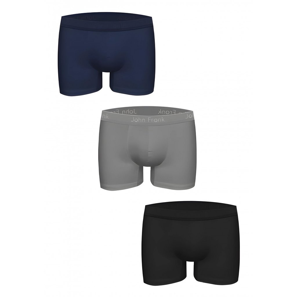 Pánské boxerky značky John Frank z materiálu s vysokým obsahem bavlny. Boxerky jsou velmi příjemné, pohodlné při nošení a vzdušné. V pase je pohodlná širší guma s logem výrobce na levém boku. Balení obsahuje troje boxerky v různých barvách.