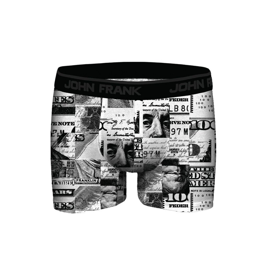 Pánské boxerky značky John Frank z vysokého podílu micromodalu. Boxerky jsou velmi příjemné na dotek a pohodlné při nošení. Boxerky mají vzor s Franklinem. Pružná guma v pase má po obvodu logo John Frank.