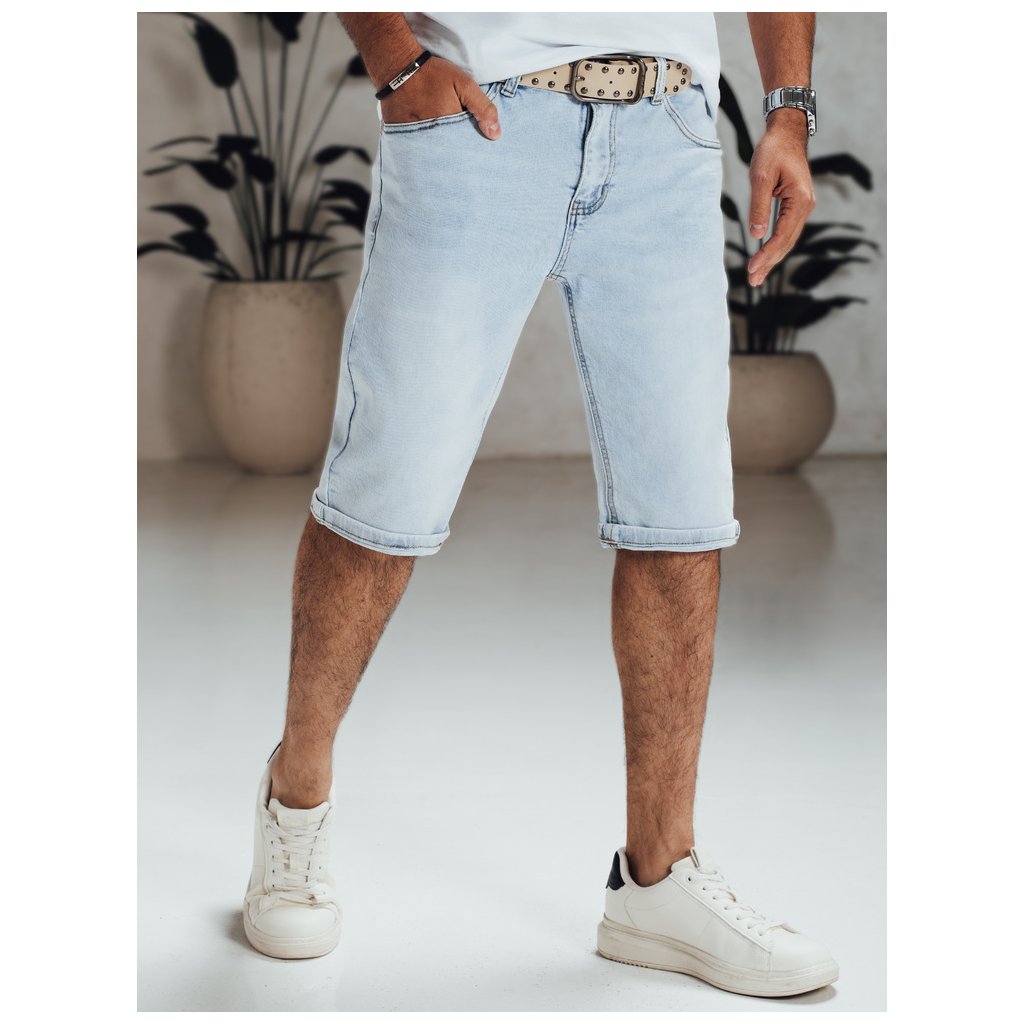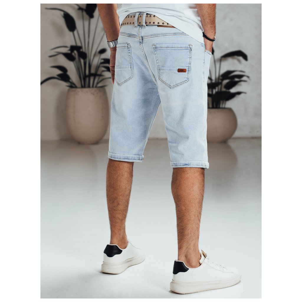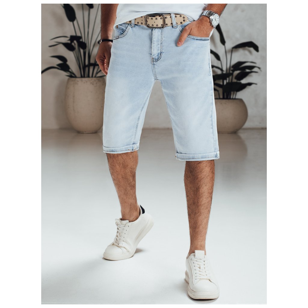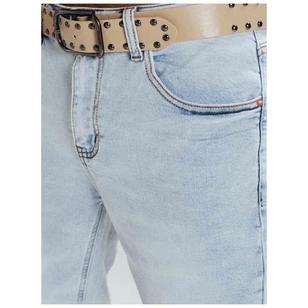 Pánské džínové kraťasy s lehkým praním a praktickým páskem s ozdobnými nýty. Klasické zapínání na knoflíky a ohrnuté lemy dotvářejí uvolněný střih. Pohodlná letní varianta, ideální k teniskám i ležérním tričkům.