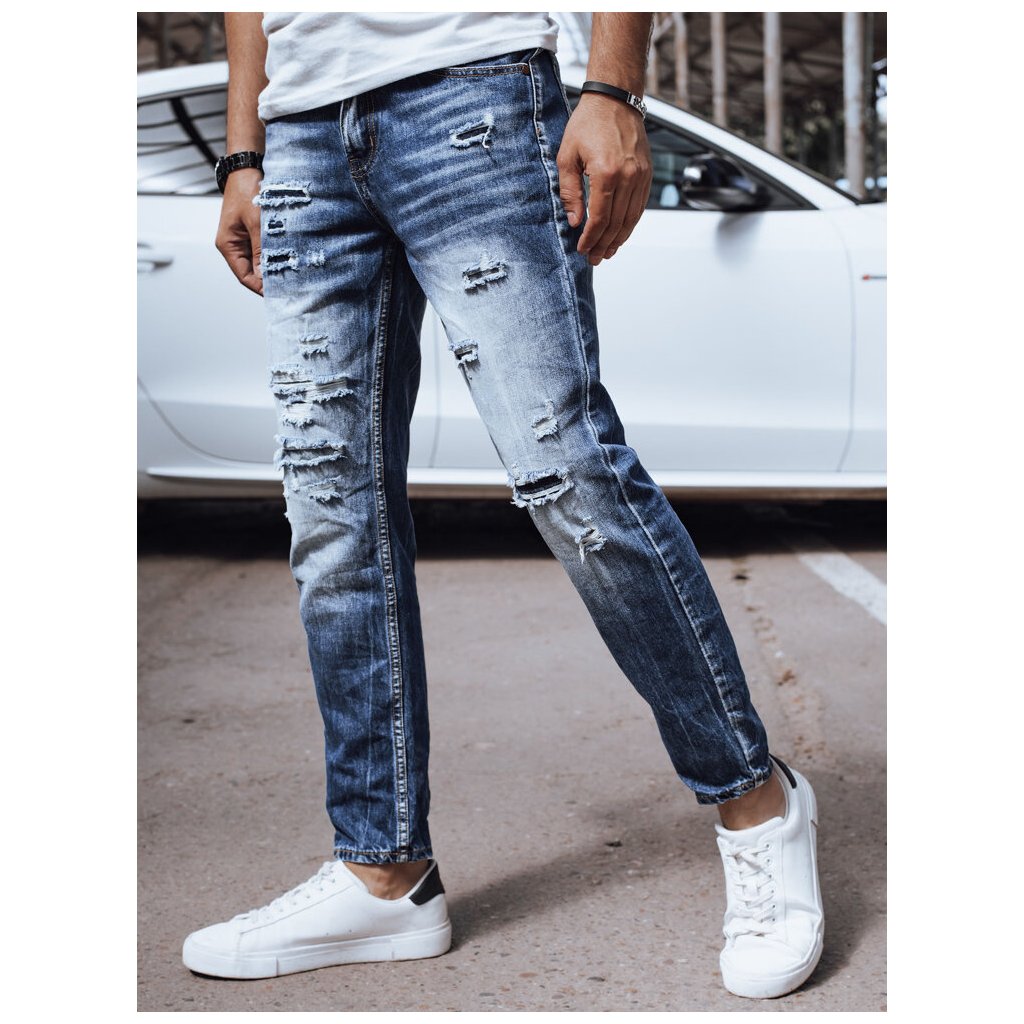 - Fantastické pánské džíny. Vyrobeno z měkké látky. Zapínání na zip. Stylové detaily s opotřebovanými detaily a díry s látkovou podšívkou. Tři přední kapsy. Dvě zadní kapsy. Mírně zúžené nohavice. Pohodlný střih. Ideální pro každodenní nošení. Materiál: 100% bavlna.