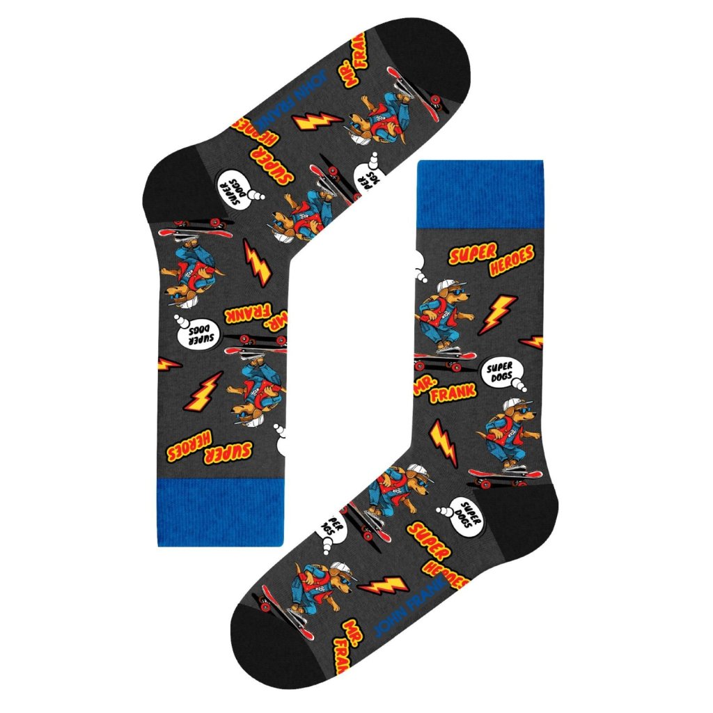 Pánské vyšší ponožky JOHN FRANK s originálním motivem. Ponožky jsou pohodlné, netáhnoucí. Ponožky jsou prodyšné a v horní části ukončené netáhnoucím lemem. Velikost ponožek je univerzální, a to od velikosti 40 až po velikost 45.