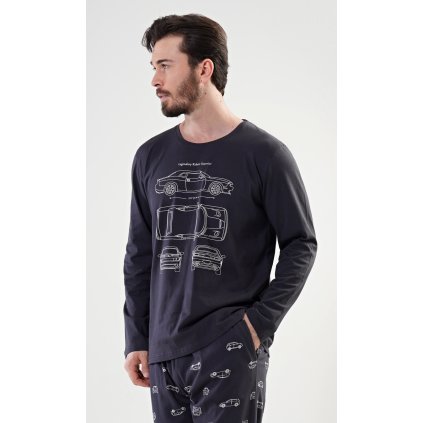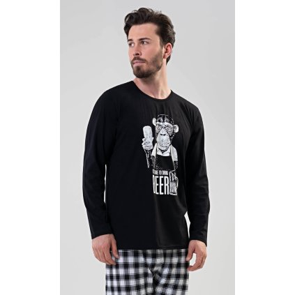 Pánské bavlněné pyžamo dlouhé s krátkým rukávem Býk. Pánské pyžamo se skládá z trička s krátkým rukávem a dlouhých kalhot. Na červeném tričku je je potisk býků. Kalhoty s kapsami mají v pase gumu a šňůrku, nohavice jsou zakončeny patenty. Použitý materiál s obsahem bavlny 100% je příjemný a poddajný na dotek.