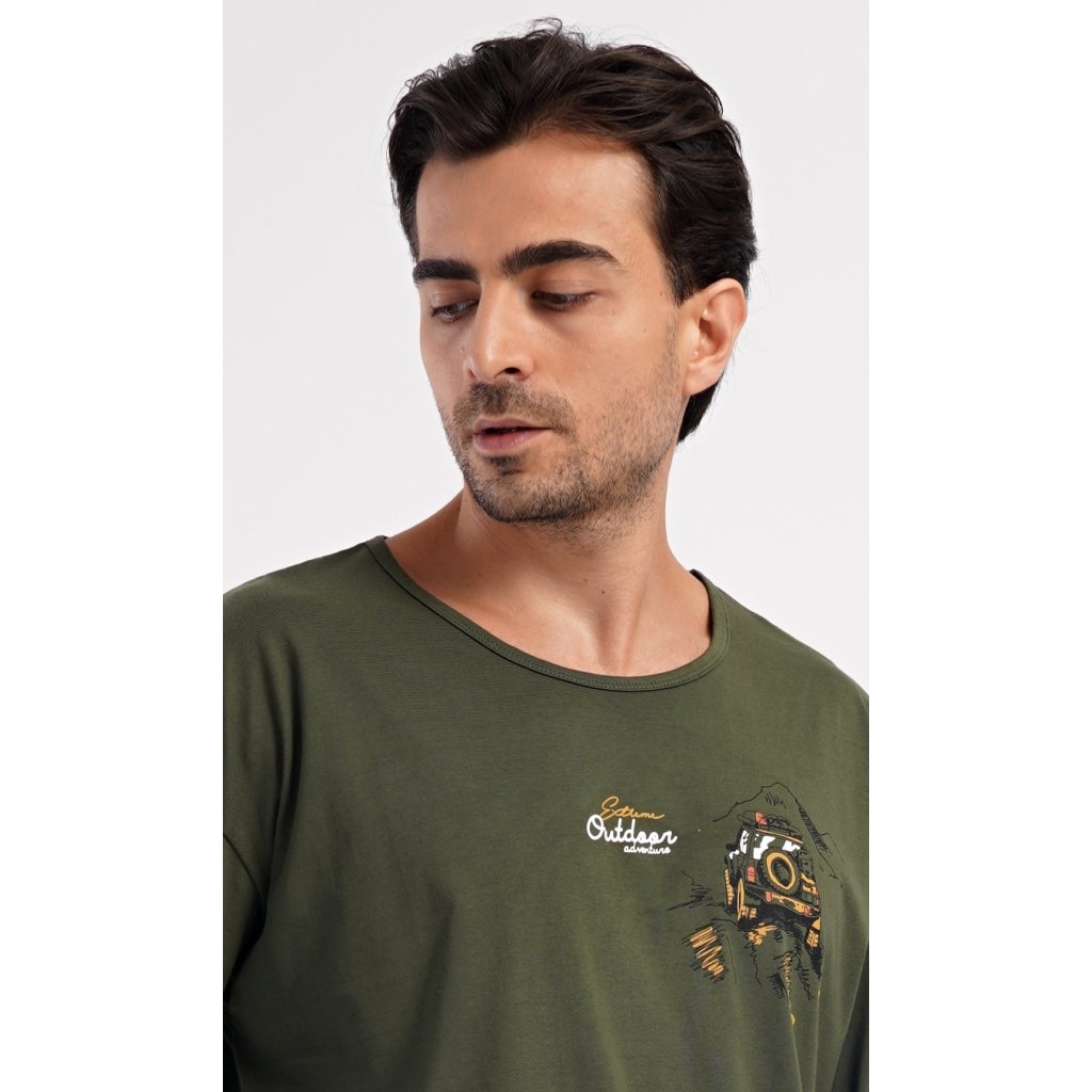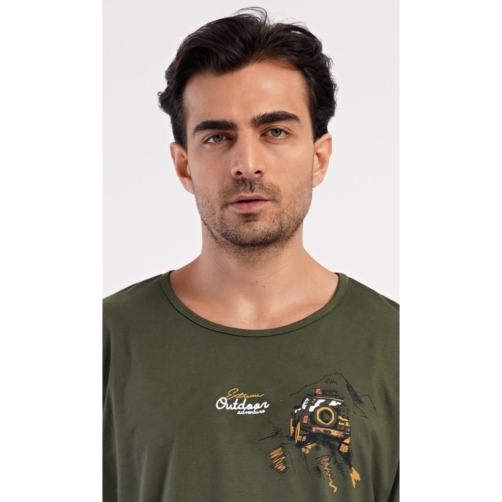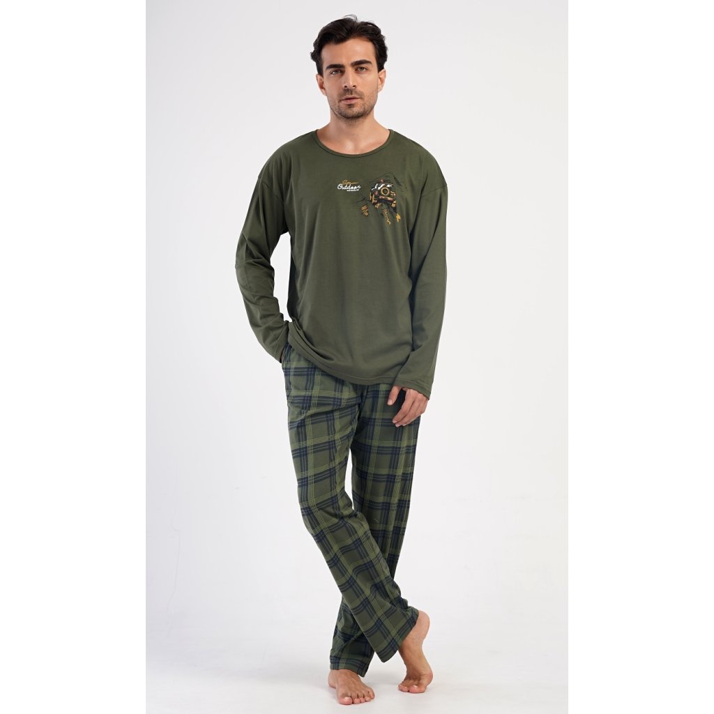 Pánské dlouhé bavlněné pyžamo David. Pánské pyžamo se skládá z trika s dlouhým rukávem a dlouhých kalhot. Triko je jednobarevné, zdobené na hrudi obrázkem terénního auta a nápisem 'Extreme outdoor adventure'. Kostkované kalhoty mají v pase gumu, šňůrku na stažení a praktické kapsy. Použitý materiál s obsahem bavlny 100% je poddajný a příjemný na dotek.