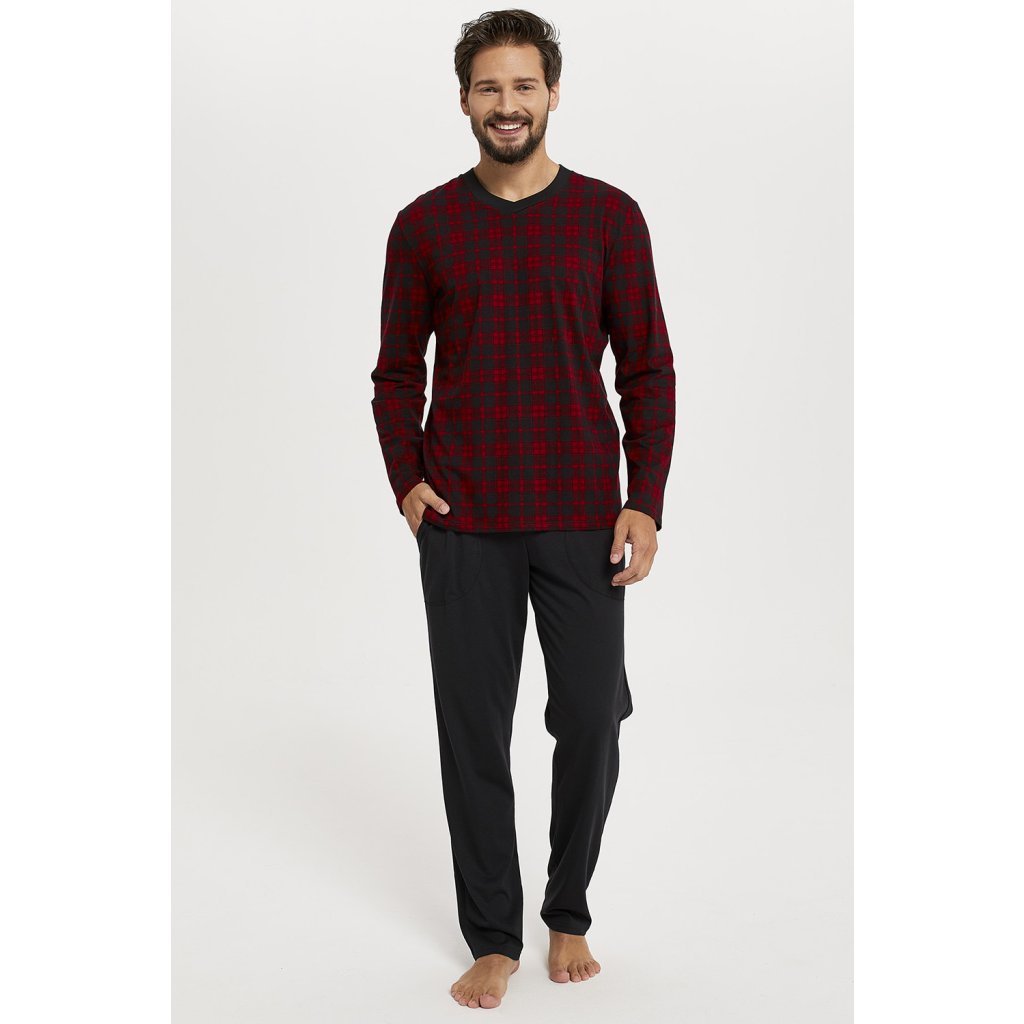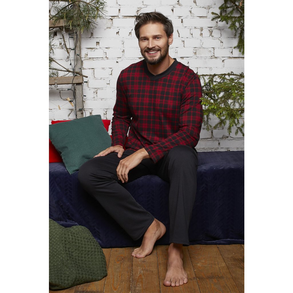 Okouzlující pánské pyžamo Eliasz v nadčasové kombinaci černé a červené.Klasický, jednoduchý střih