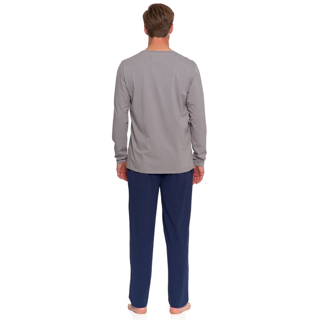 Pyžamový set Moraj PDM4600 013 kombinuje měkkou bavlnu s elastanem, což zajišťuje celonoční pohodlí a volnost pohybu. Mikina s dlouhým rukávem má kulatý výstřih zakončený měkkým lemováním pro větší pohodlí. Dlouhé kalhoty rovného střihu mají praktické kapsy, takže budete mít doma vždy po ruce drobné doplňky. Materiál je měkký na dotek a podporuje cirkulaci vzduchu, ideální jak pro spaní, tak pro večerní relaxaci. Klasické linie a decentní detaily usnadňují začlenění do vašeho šatníku. Je to perfektní volba pro každý den: na spaní, lenošná rána i pohodlný odpočinek po práci. Pyžamo si díky pružnému složení vláken zachovává svůj tvar a pohodlí i po mnoha praních. Rovný střih se přizpůsobí tělu a umožňuje neomezený pohyb.Měkká bavlna s přídavkem elastanu pro pohodlí