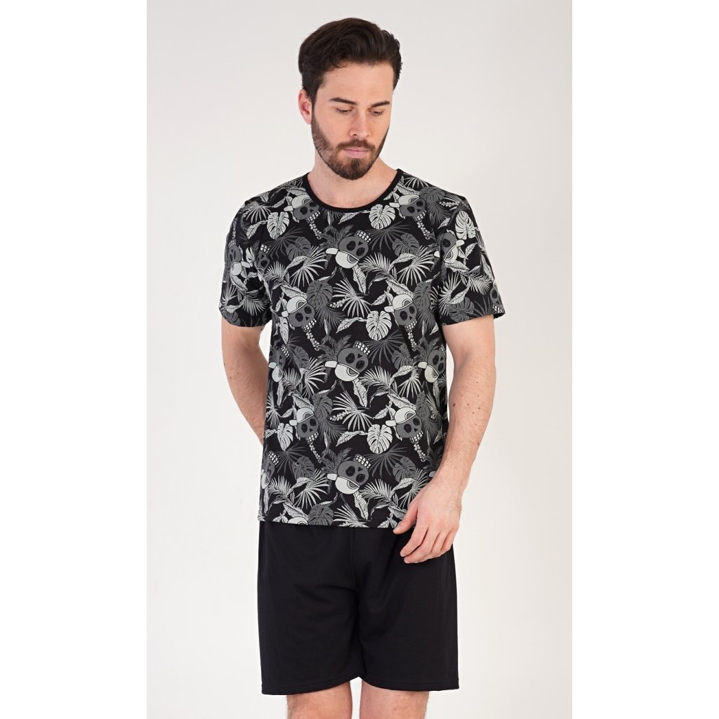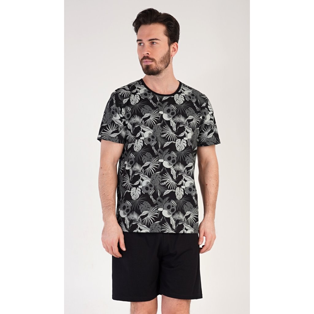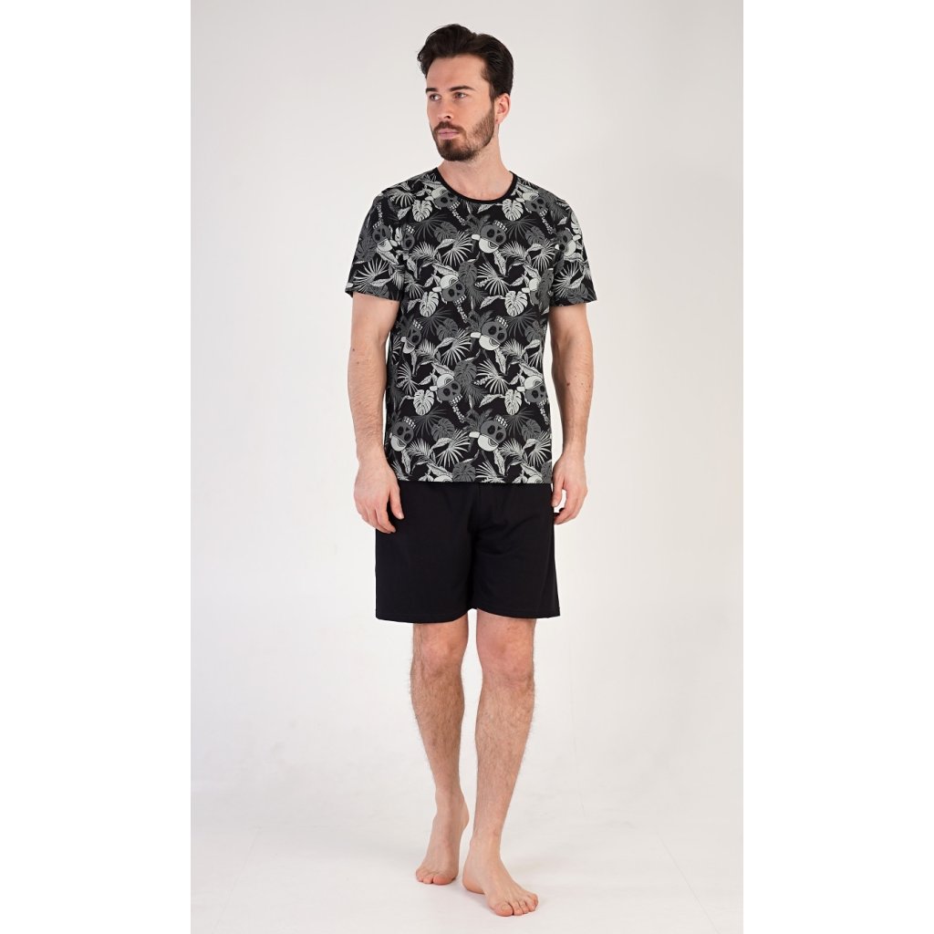 Pánské bavlněné pyžamo šotky Albert. Pánské pyžamo se skládá z trička s krátkým rukávem a krátkých šortkových kalhot. Tričko s kulatým výstřihem je potištěno. Šortky jsou bez kapes, mají gumu a šňůrku na stažení. Použitý materiál s podílem bavlny 100% je příjemný a poddajný na dotek. Pyžamo je vhodné i na denní nošení.