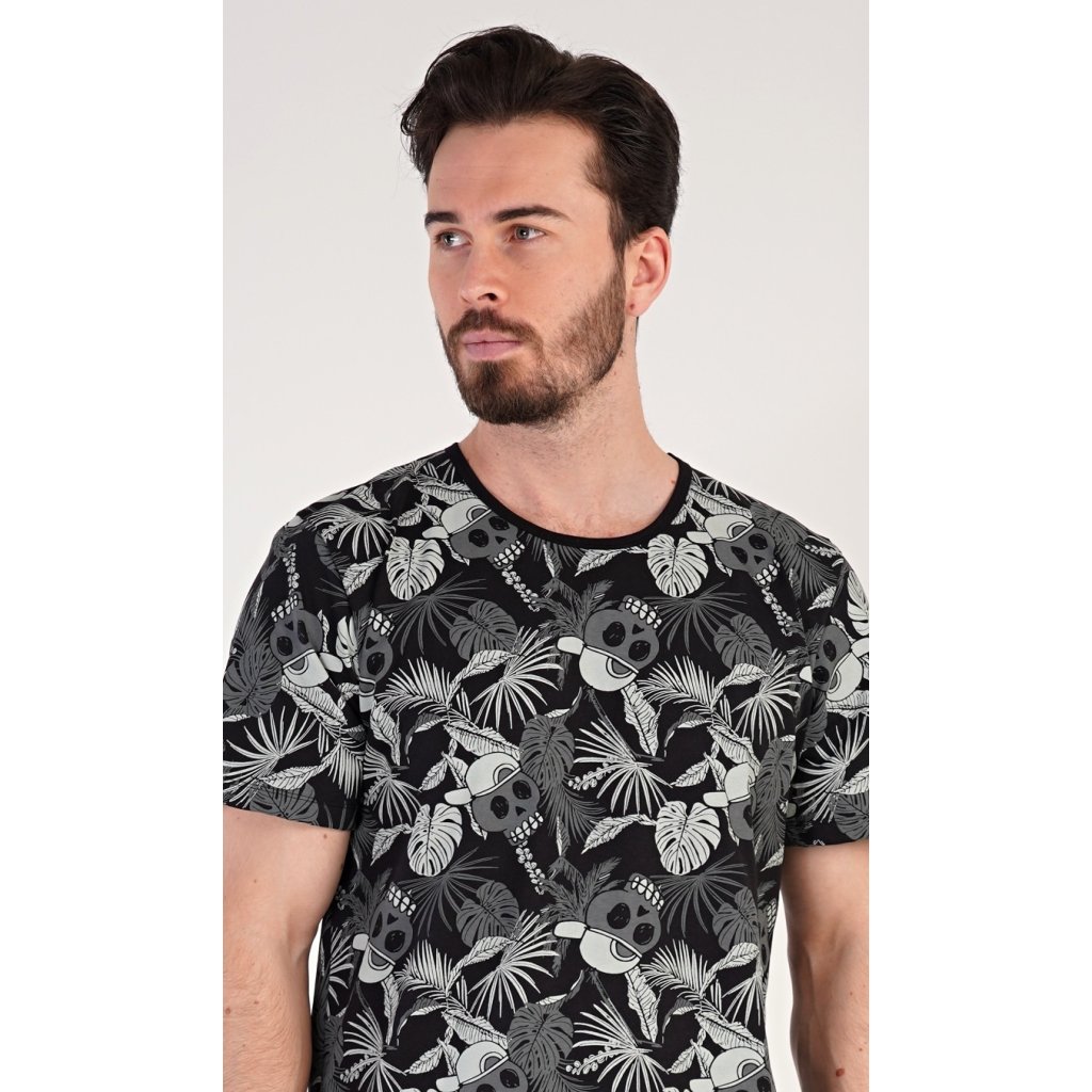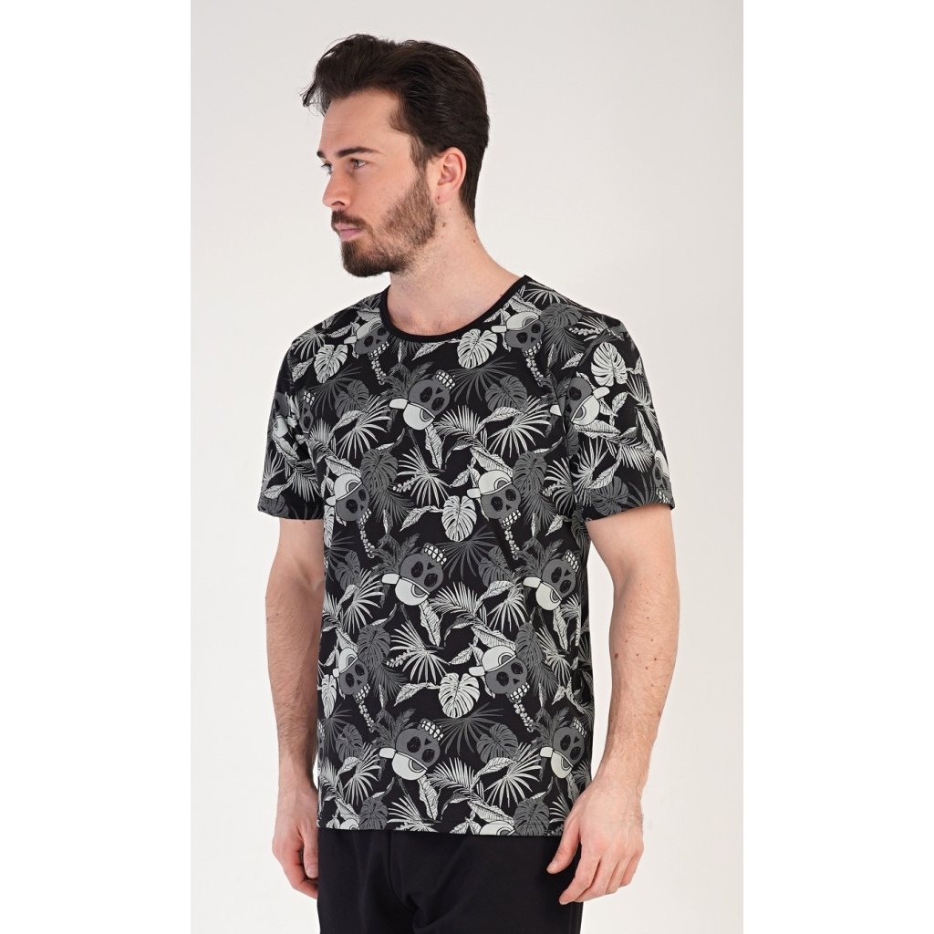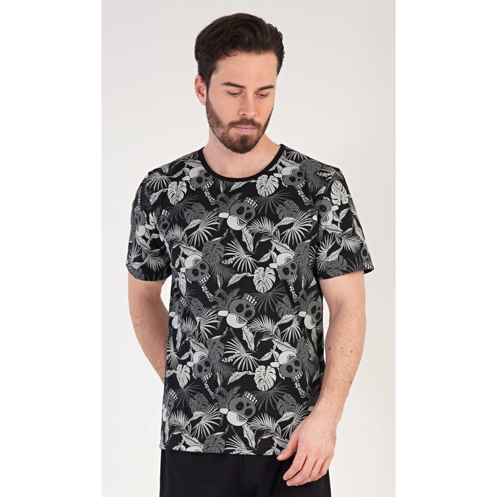 Pánské bavlněné pyžamo šotky Albert. Pánské pyžamo se skládá z trička s krátkým rukávem a krátkých šortkových kalhot. Tričko s kulatým výstřihem je potištěno. Šortky jsou bez kapes, mají gumu a šňůrku na stažení. Použitý materiál s podílem bavlny 100% je příjemný a poddajný na dotek. Pyžamo je vhodné i na denní nošení.