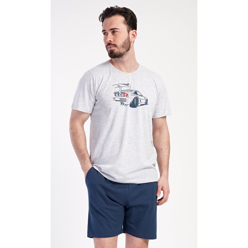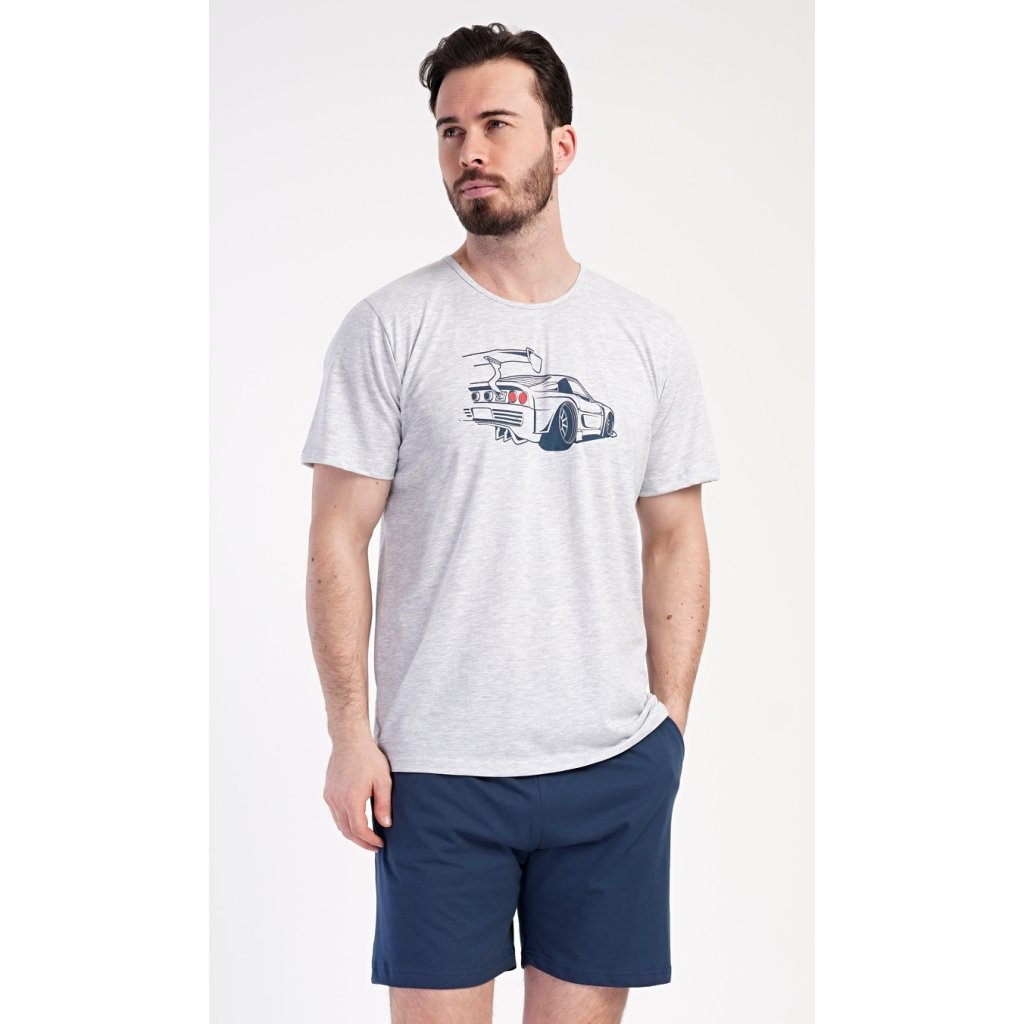 Pánské šortkové pyžamo Cars. Pánské pyžamo se skládá z trička s krátkým rukávem a krátkých šortkových kalhot. Na tričku je obrázek závodního auta. Šortky mají kapsy, v pase gumu a šňůrku na stáhnutí. Použitý materiál je příjemný a poddaný na dotek. Obsah bavlny u trička je 70% a u šortek 100%. Pyžamo je vhodné i na denní nošení a oceníte ho obzvlášť v horkých letních dnech.