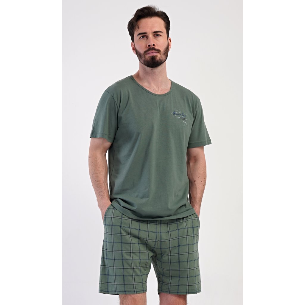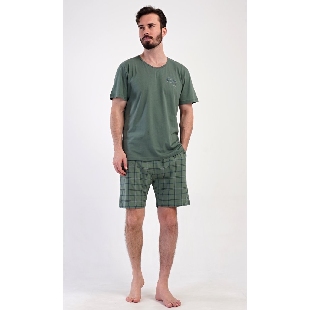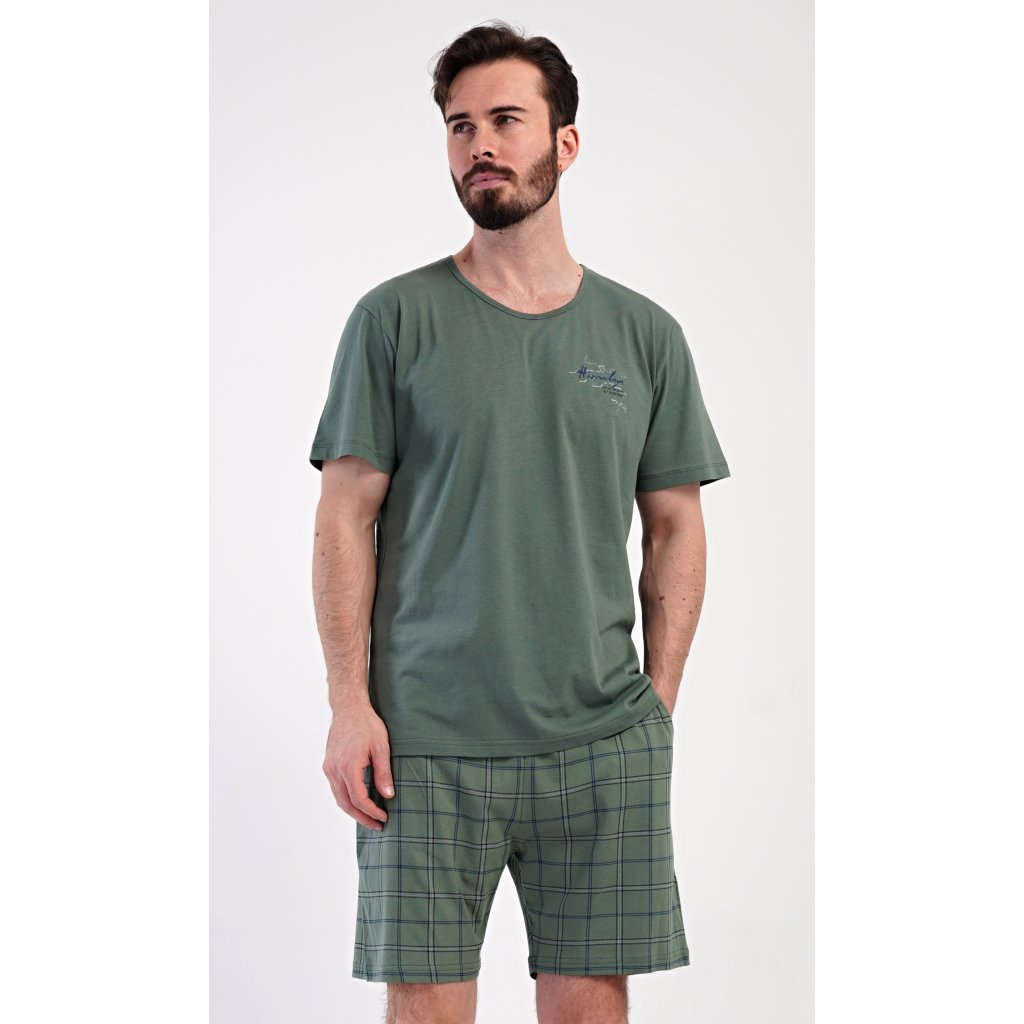 Pánské bavlněné šortkové pyžamo Ralph. Pánské pyžamo se skládá z trička s krátkým rukávem a krátkých šortkových kalhot. Tričko s kulatým výstřihem zdobí na hrudi menší nápis Himalaya. Tričko doplňují kárované šortky, které mají v pase gumu, šňůrku na stažení a praktické kapsy. Použitý materiál s obsahem bavlny 100% je příjemný a poddajný na dotek.