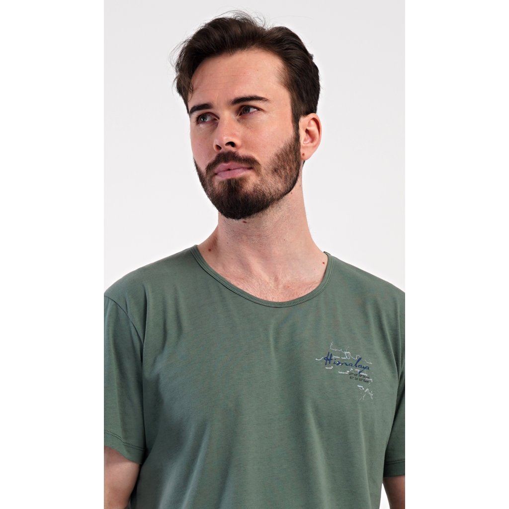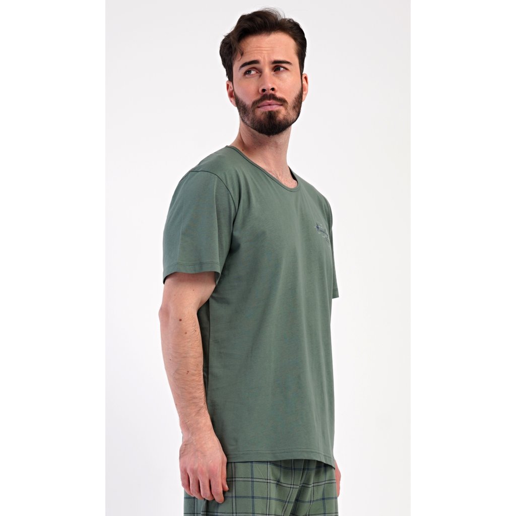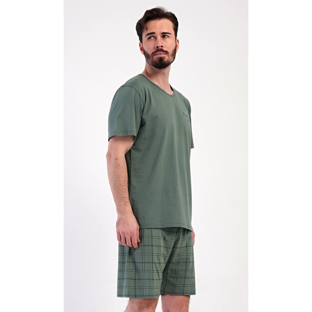 Pánské bavlněné šortkové pyžamo Ralph. Pánské pyžamo se skládá z trička s krátkým rukávem a krátkých šortkových kalhot. Tričko s kulatým výstřihem zdobí na hrudi menší nápis Himalaya. Tričko doplňují kárované šortky, které mají v pase gumu, šňůrku na stažení a praktické kapsy. Použitý materiál s obsahem bavlny 100% je příjemný a poddajný na dotek.