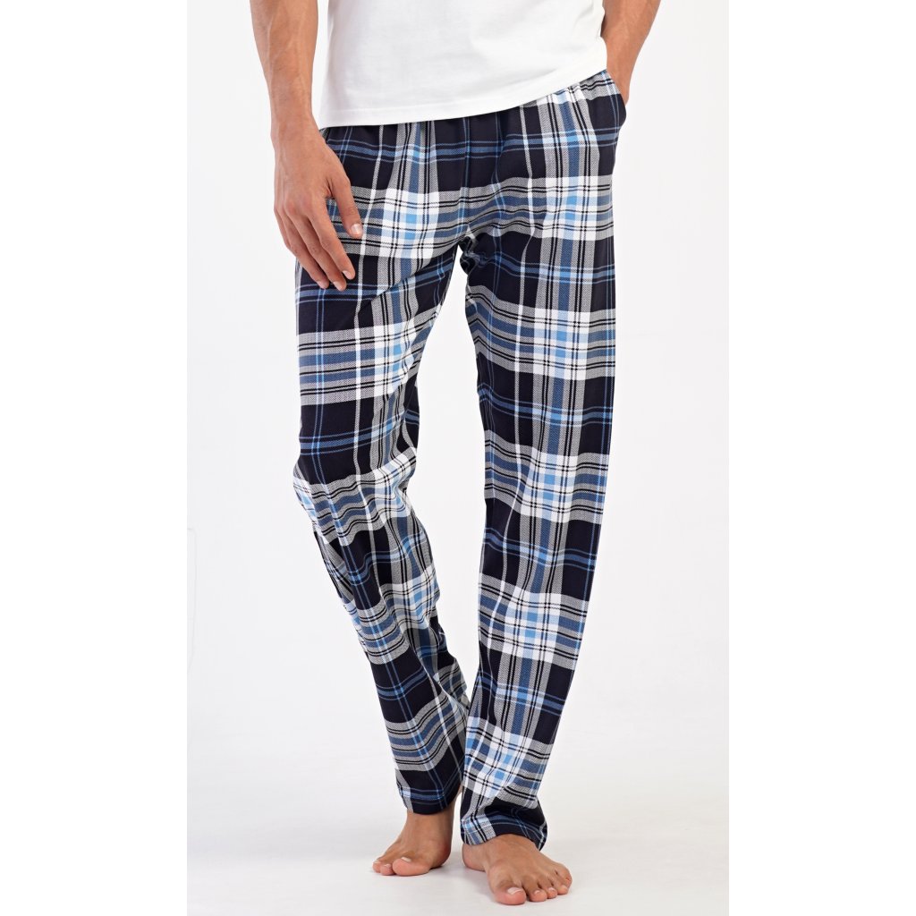 Pánské bavlněné pyžamové kalhoty Bruno. Kostkované kalhoty mají v pase gumu, šňůrku na stažení a praktické kapsy. Mateiriál s podílem bavlny 100% je příjemný a poddajný na dotek.