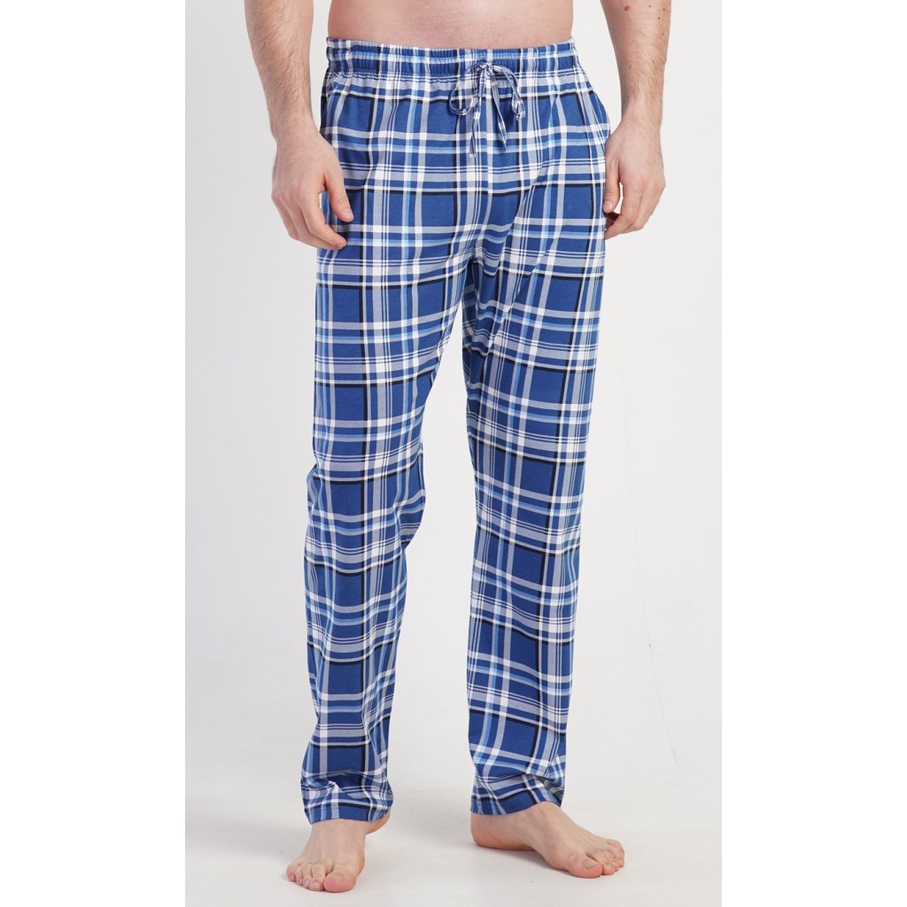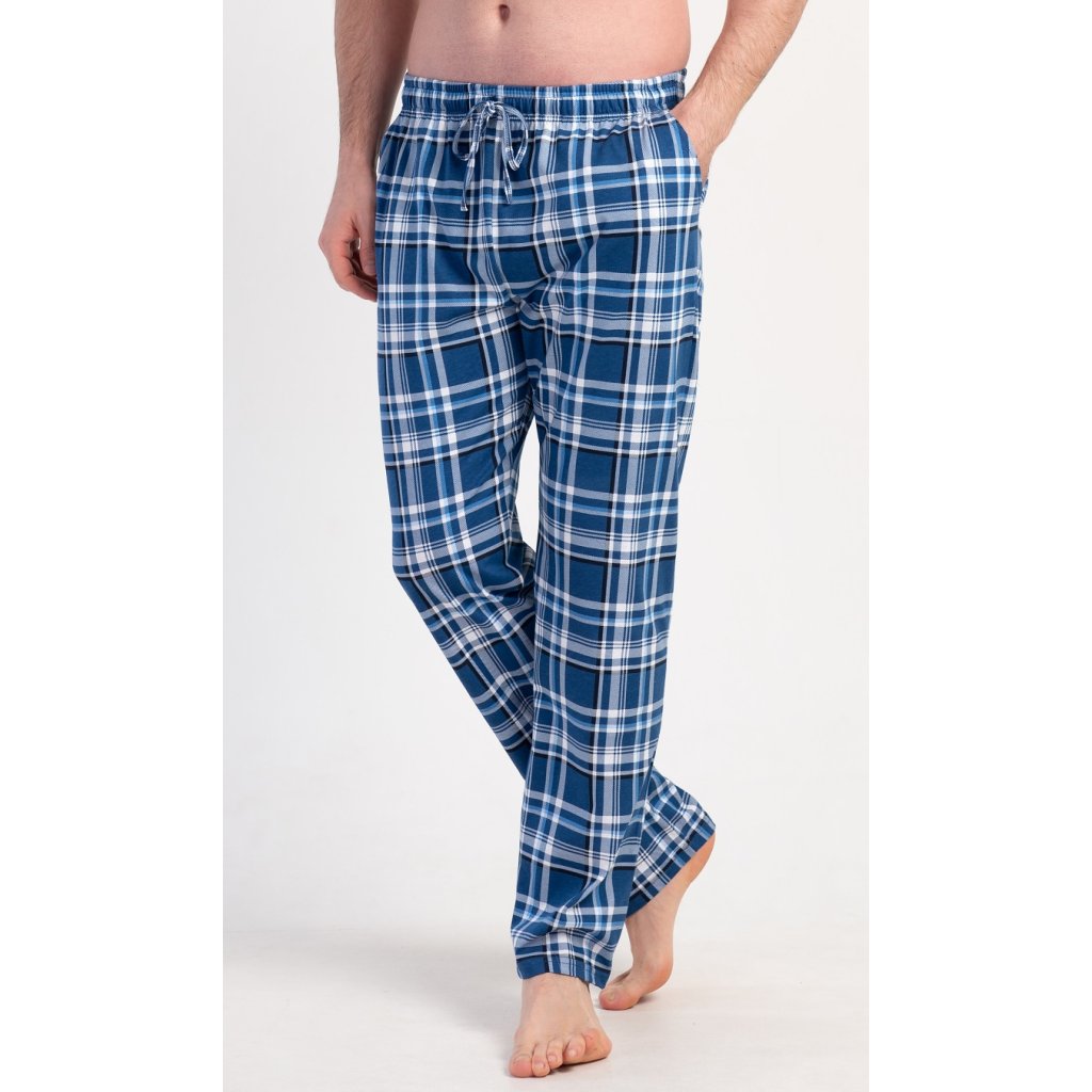 Pánské bavlněné pyžamové kalhoty Josef. Kostkované kalhoty mají v pase gumu, šňůrku na stažení a praktické kapsy. Mateiriál s podílem bavlny 100% je příjemný a poddajný na dotek.