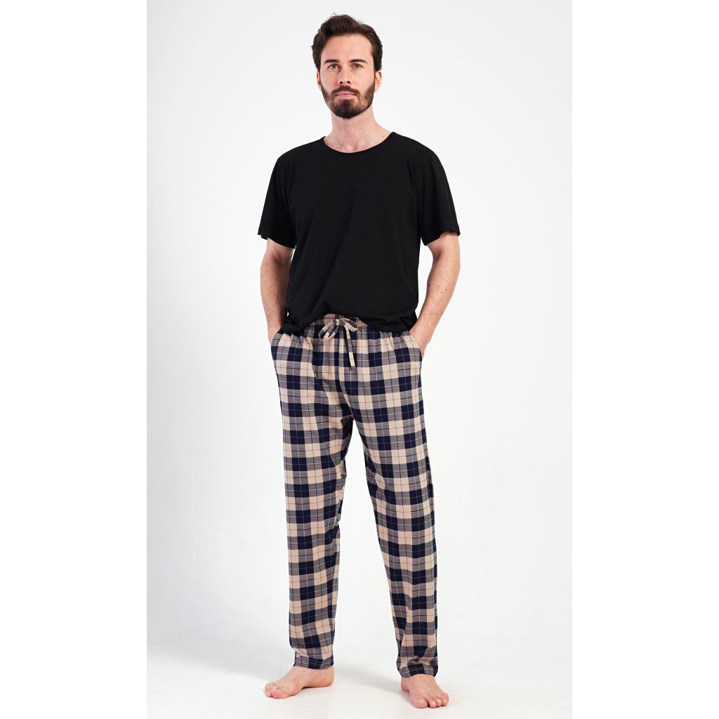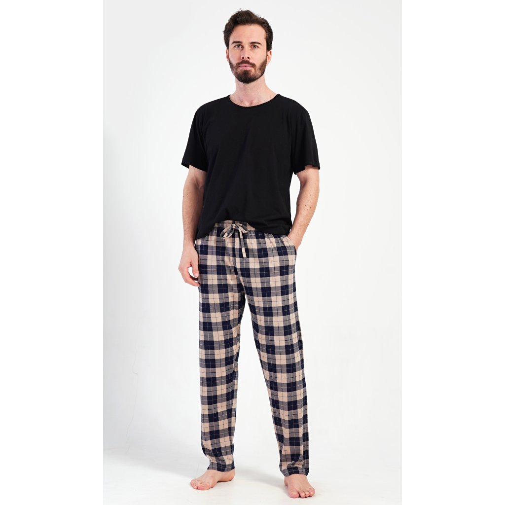 Pánské bavlněné pyžamové kalhoty Marian. Kostkované kalhoty mají v pase gumu, šňůrku na stažení a praktické kapsy. Mateiriál s podílem bavlny 100% je příjemný a poddajný na dotek.