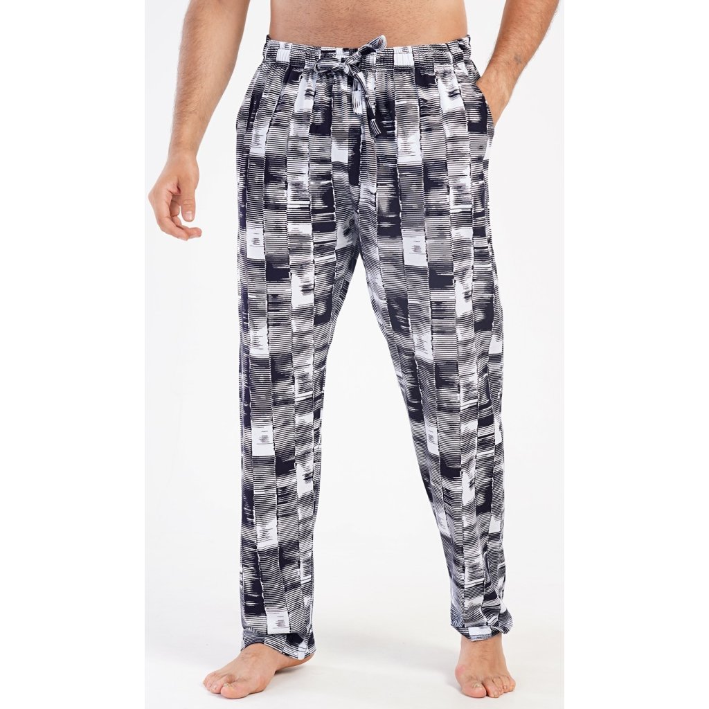 Pánské bavlněné pyžamové kalhoty Petr. Kalhoty mají v pase gumu, šňůrku na stažení a praktické kapsy. Mateiriál s podílem bavlny 100% je příjemný a poddajný na dotek. Kalhoty jsou vhodné i na denní nošení.