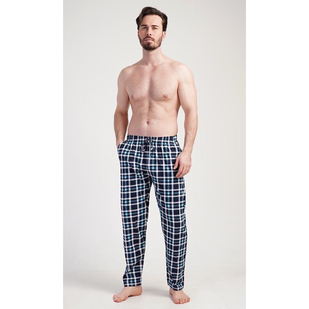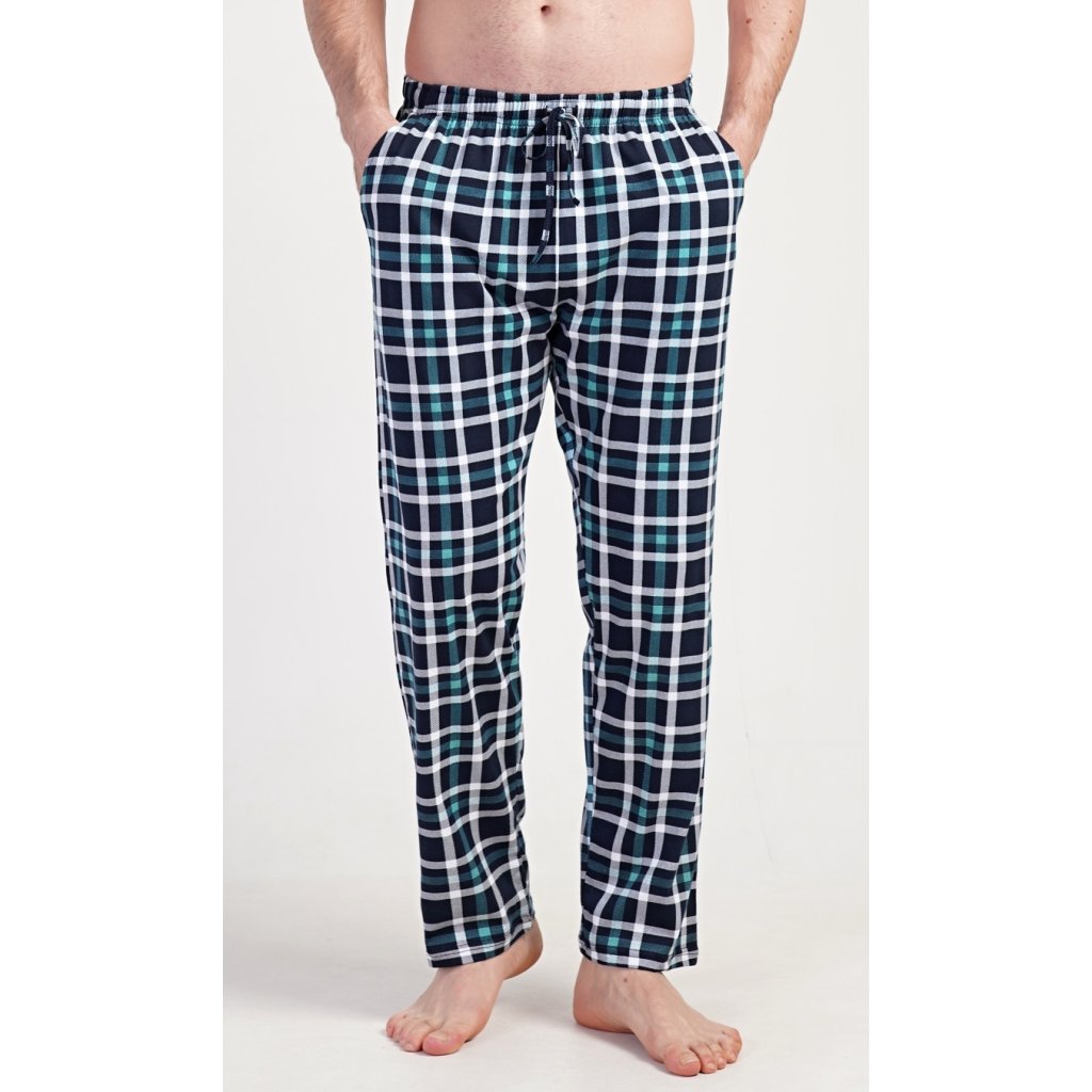 Pánské bavlněné pyžamové kalhoty Simon. Kostkované kalhoty mají v pase gumu, šňůrku na stažení a praktické kapsy. Mateiriál s podílem bavlny 100% je příjemný a poddajný na dotek.