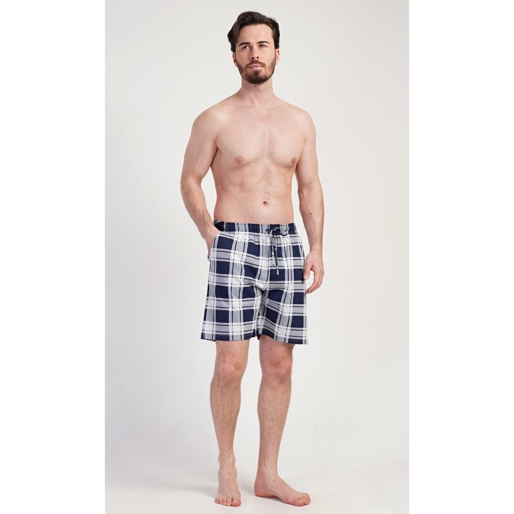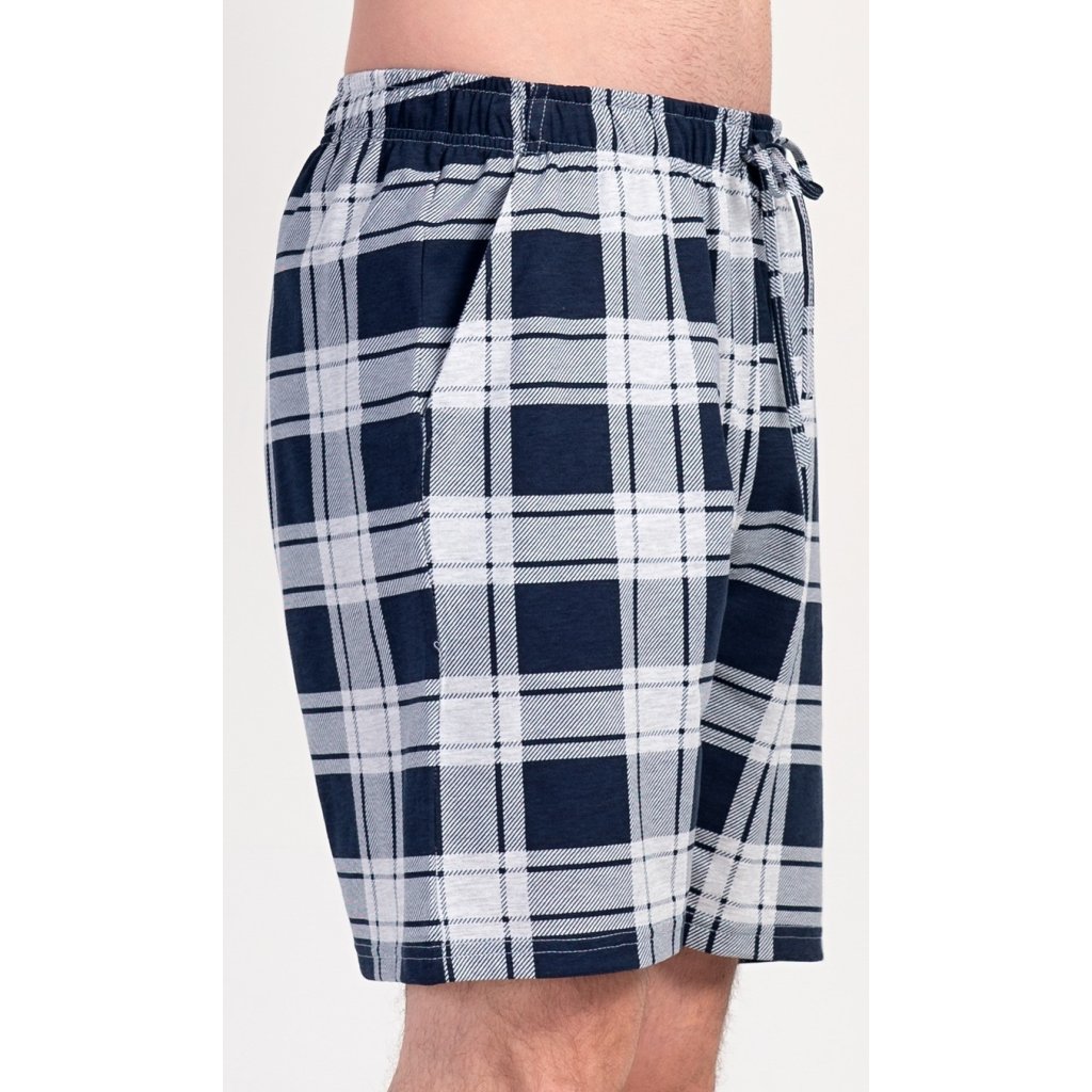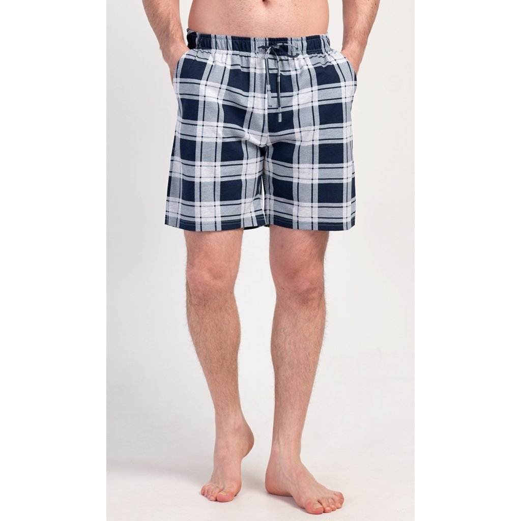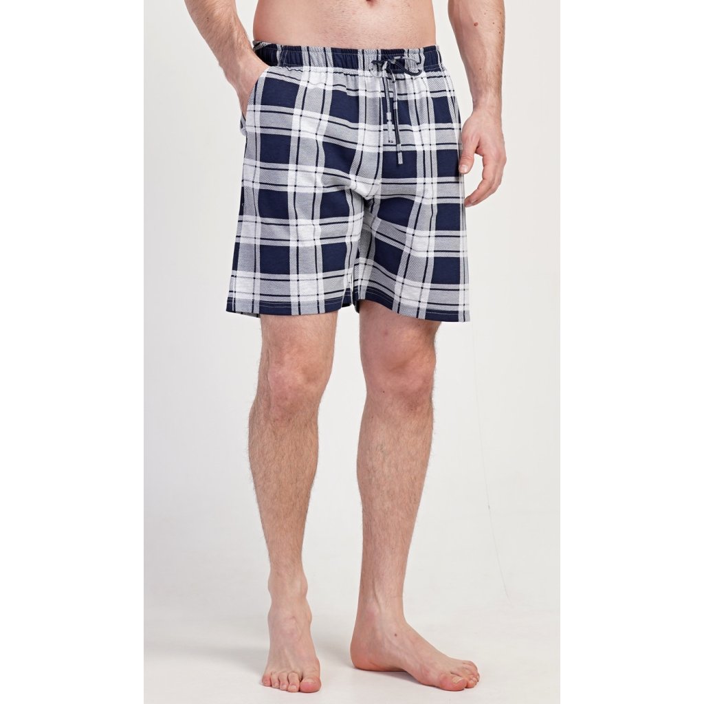 Pánské bavlněné pyžamové šortky Edvard. Kostkované šortky mají v pase gumu, šňůrku na stažení a praktické kapsy. Mateiriál s podílem bavlny 100% je příjemný a poddajný na dotek. Pyžamové šortky jsou vhodné i na denní nošení pro volnočasové aktivity.