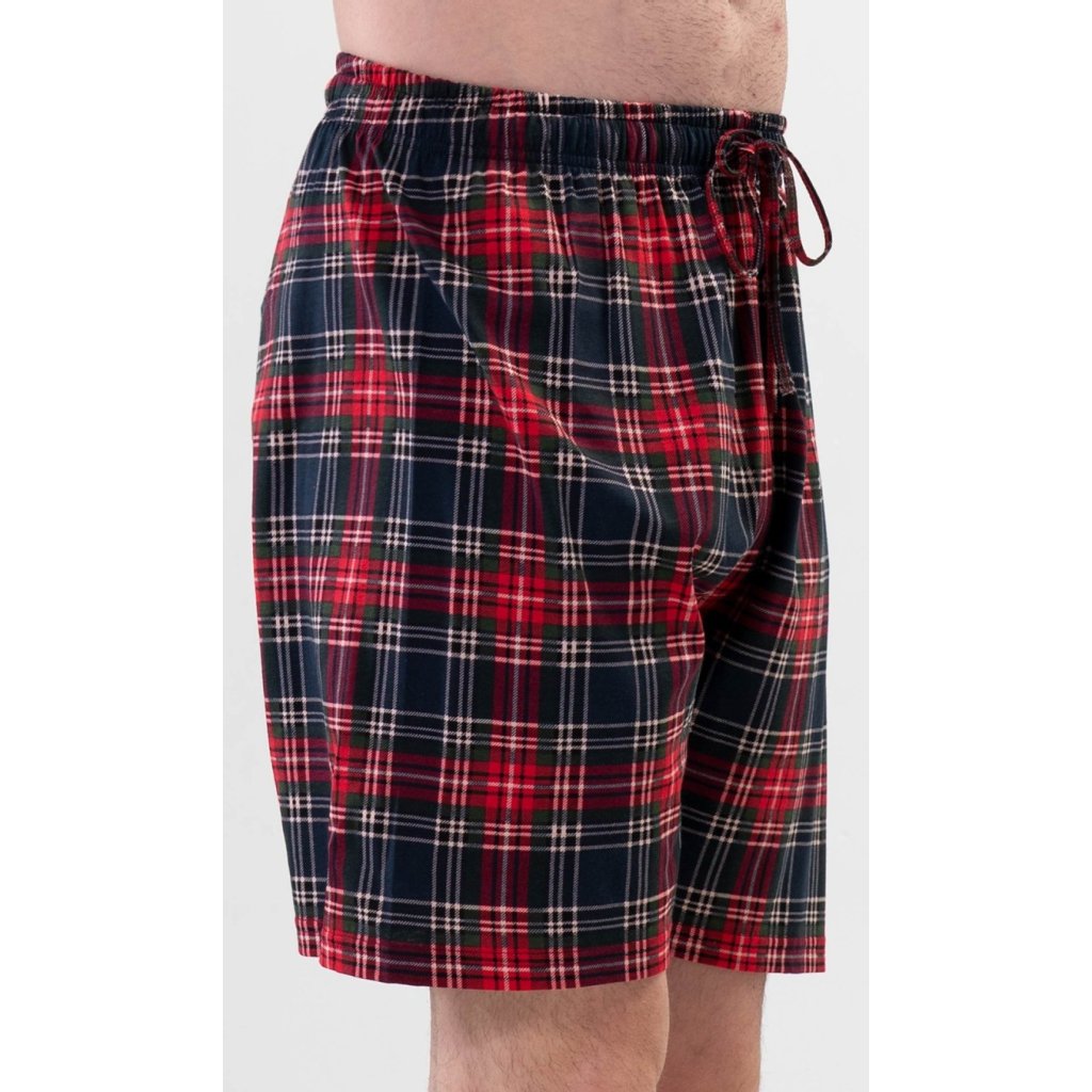 Pánské bavlněné pyžamové šortky Karel. Kostkované šortky mají v pase gumu a šňůrku na stažení, namají kapsy. Použitý mateiriál je příjemný a poddajný na dotek. Kalhoty jsou vhodné na denní nošení.