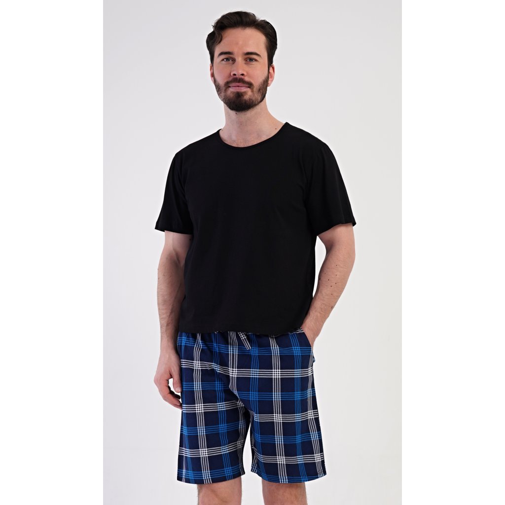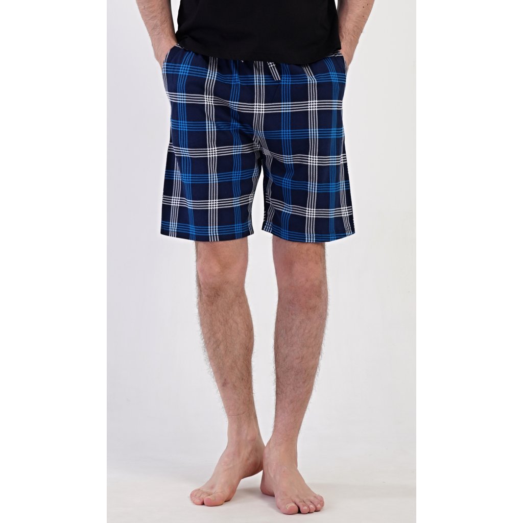 Pánské bavlněné pyžamové šortky Matěj. Kostkované šortky mají v pase gumu, šňůrku na stažení a praktické kapsy. Mateiriál s podílem bavlny 100% je příjemný a poddajný na dotek. Pyžamové šortky jsou vhodné i na denní nošení pro volnočasové aktivity.