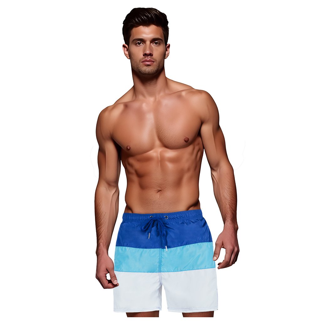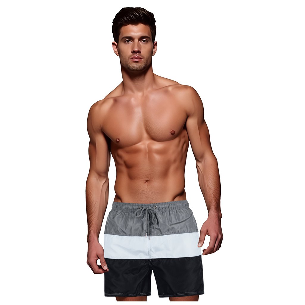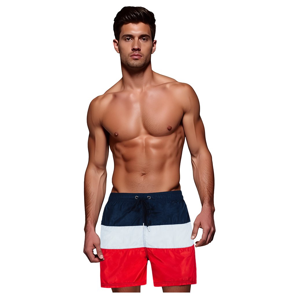 Tyto pánské plavecké kraťasy s elastickým pasem a nastavitelnou šňůrkou jsou pohodlnou letní volbou. Výrazné pruhy ve třech barvách dodávají kraťasům osobitý, stylový plážový vzhled. Praktické boční kapsy a zapínání na suchý zip vzadu zajišťují funkčnost. Ideální pro aktivní trávení volného času na pláži i u bazénu.