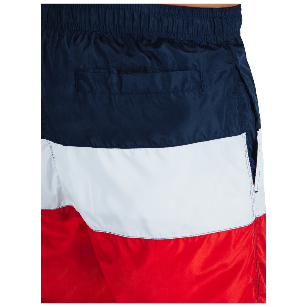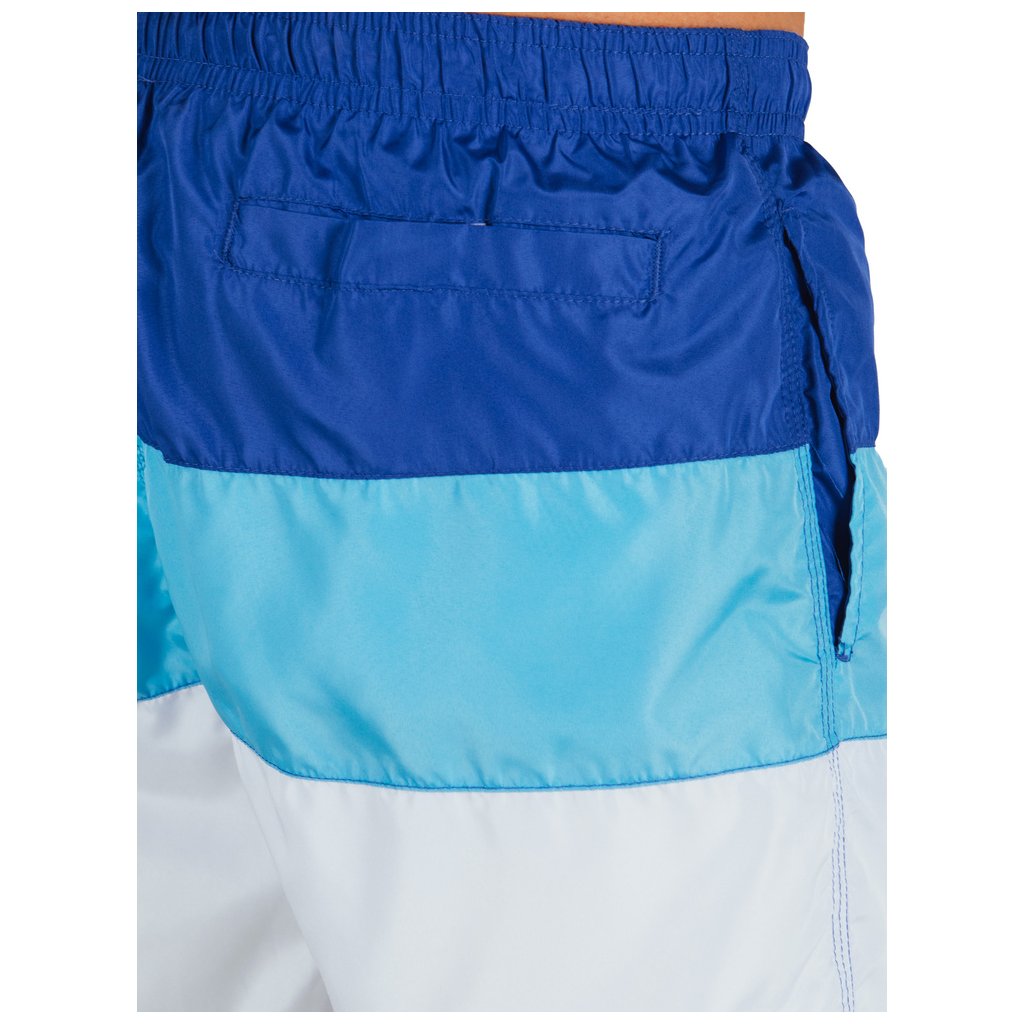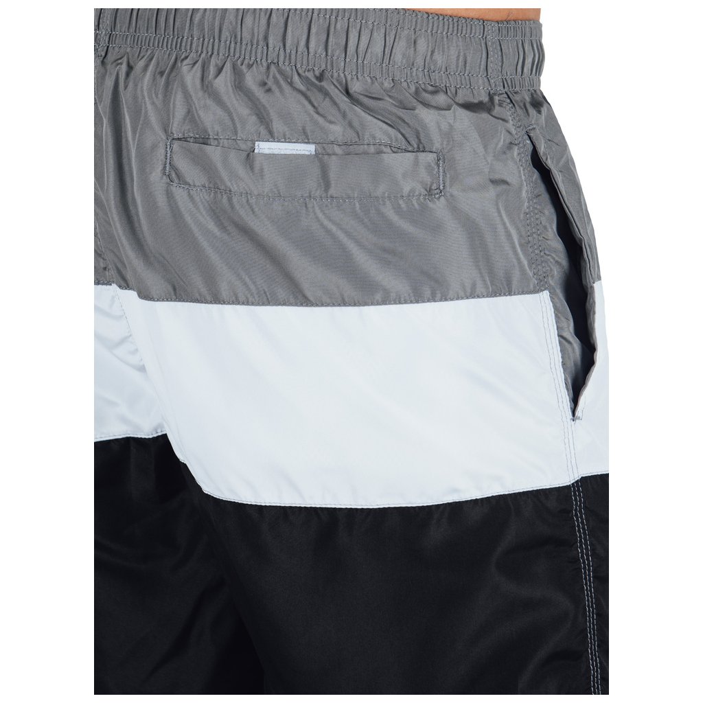 Tyto pánské plavecké kraťasy s elastickým pasem a nastavitelnou šňůrkou jsou pohodlnou letní volbou. Výrazné pruhy ve třech barvách dodávají kraťasům osobitý, stylový plážový vzhled. Praktické boční kapsy a zapínání na suchý zip vzadu zajišťují funkčnost. Ideální pro aktivní trávení volného času na pláži i u bazénu.