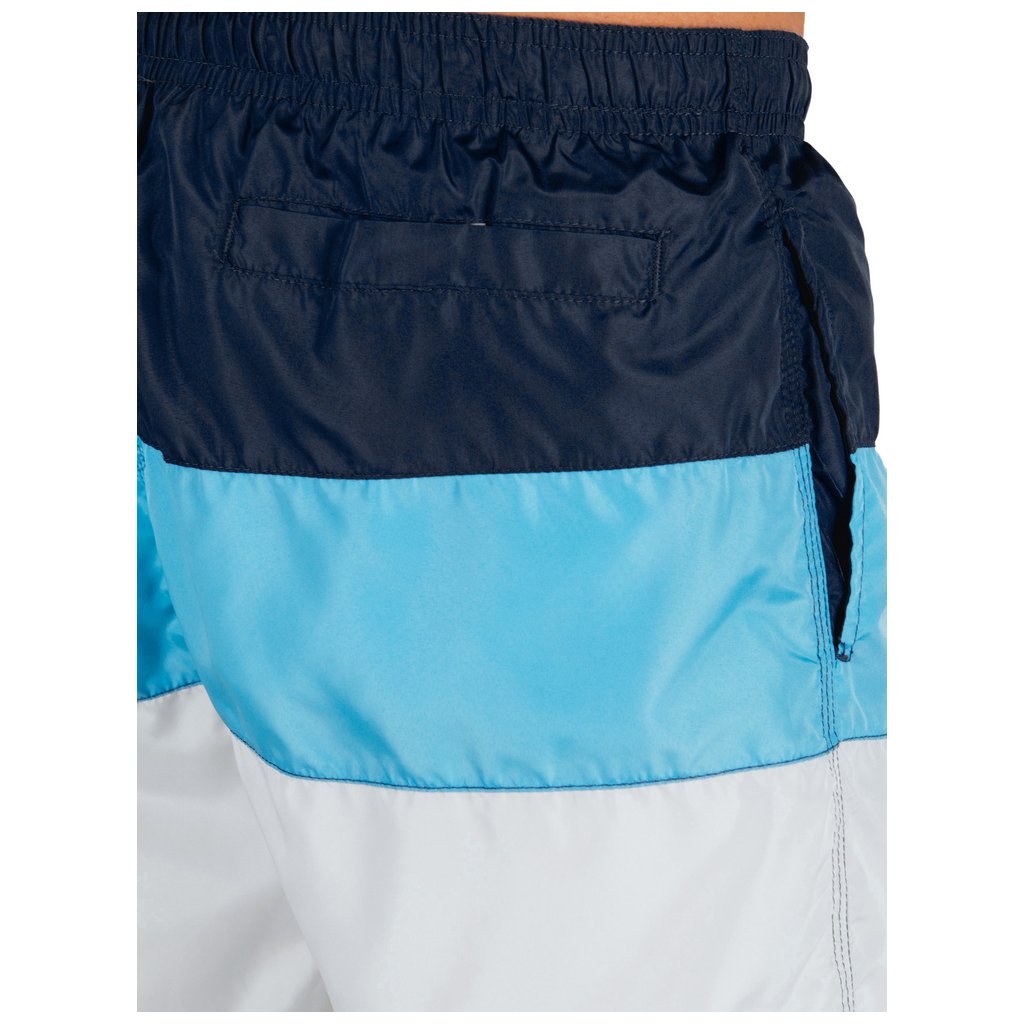 Tyto pánské plavecké kraťasy s elastickým pasem a nastavitelnou šňůrkou jsou pohodlnou letní volbou. Výrazné pruhy ve třech barvách dodávají kraťasům osobitý, stylový plážový vzhled. Praktické boční kapsy a zapínání na suchý zip vzadu zajišťují funkčnost. Ideální pro aktivní trávení volného času na pláži i u bazénu.
