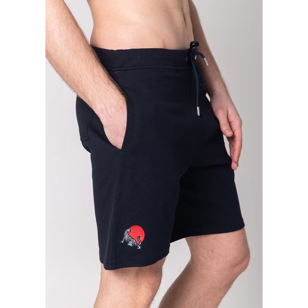 Pánské teplákové šortky John Frank. Šortky jsou volného střihu, v pase mají gumičku a šňůrku na utažení. Po stranách mají kapsy, stejně tak v zadní části. Na pravé nohavici je jemná nášivka.