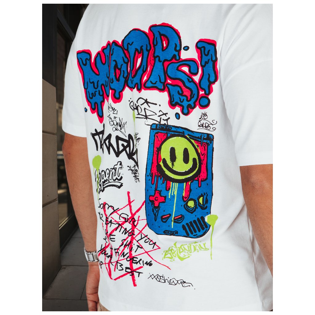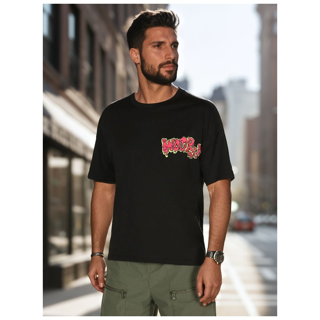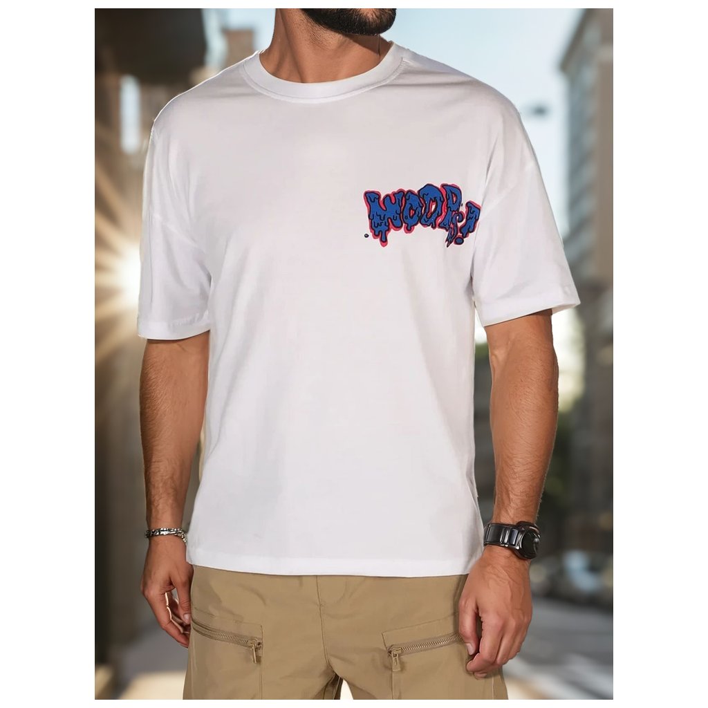 Toto pánské tričko má volný střih, ideální pro každodenní nošení a stylový městský vzhled. Má kontrastní potisk na přední straně a velký graffiti obrázek na zadní straně, který je poutavý a dodává mu streetwearový nádech. Klasický kulatý výstřih zajišťuje pohodlí a prodyšný materiál je ideální na jaro.