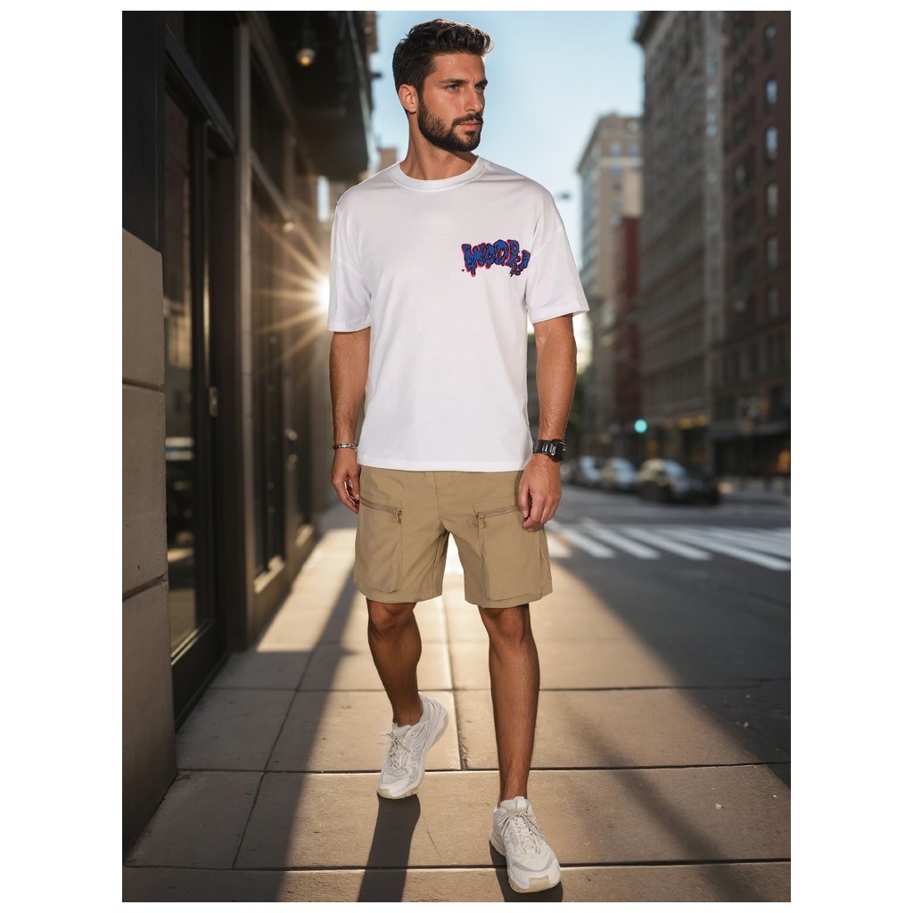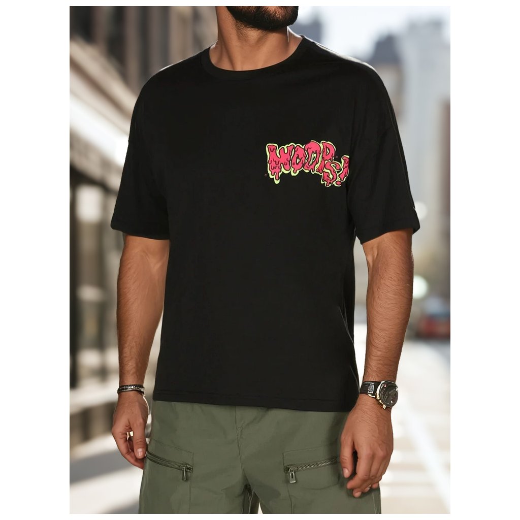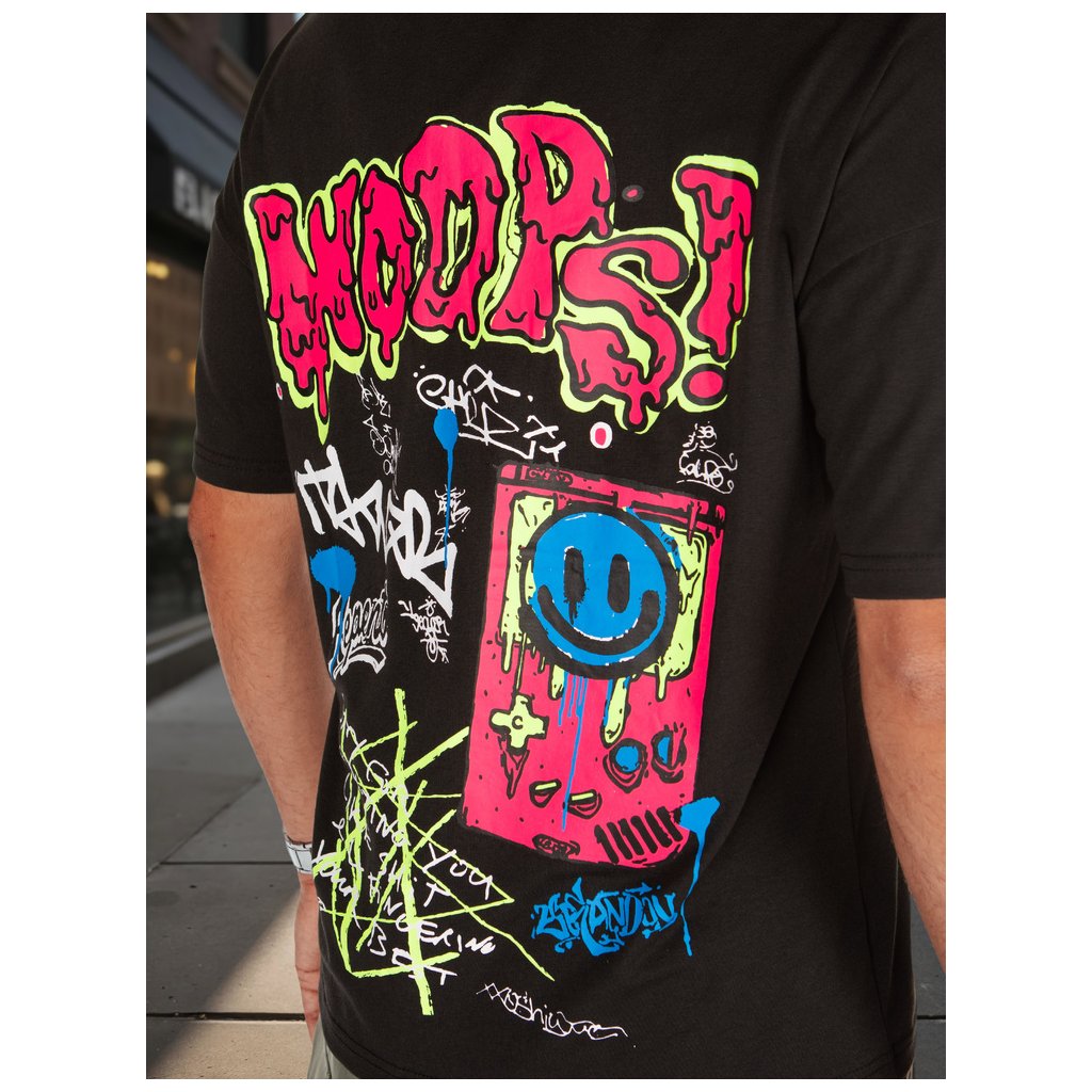 Toto pánské tričko má volný střih, ideální pro každodenní nošení a stylový městský vzhled. Má kontrastní potisk na přední straně a velký graffiti obrázek na zadní straně, který je poutavý a dodává mu streetwearový nádech. Klasický kulatý výstřih zajišťuje pohodlí a prodyšný materiál je ideální na jaro.