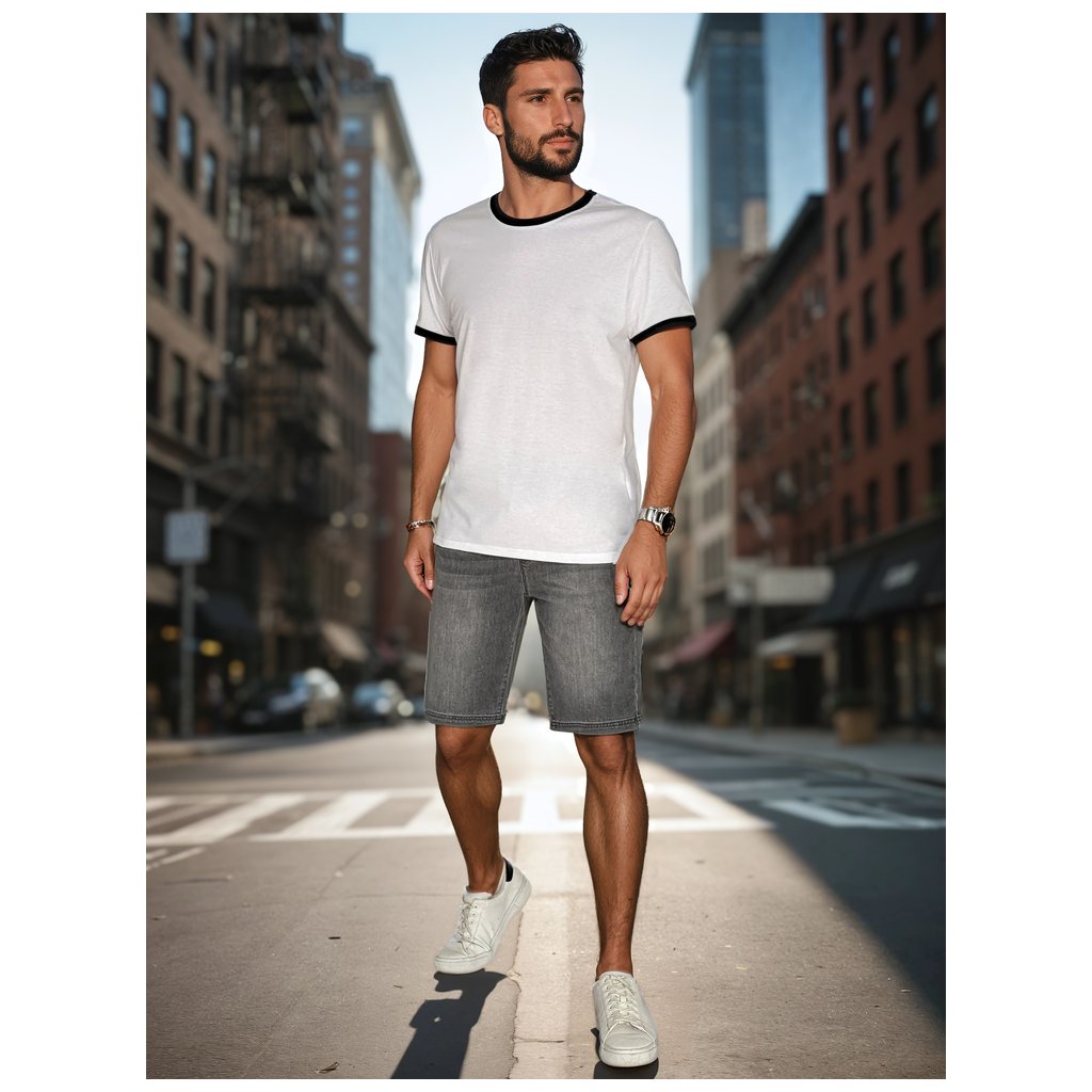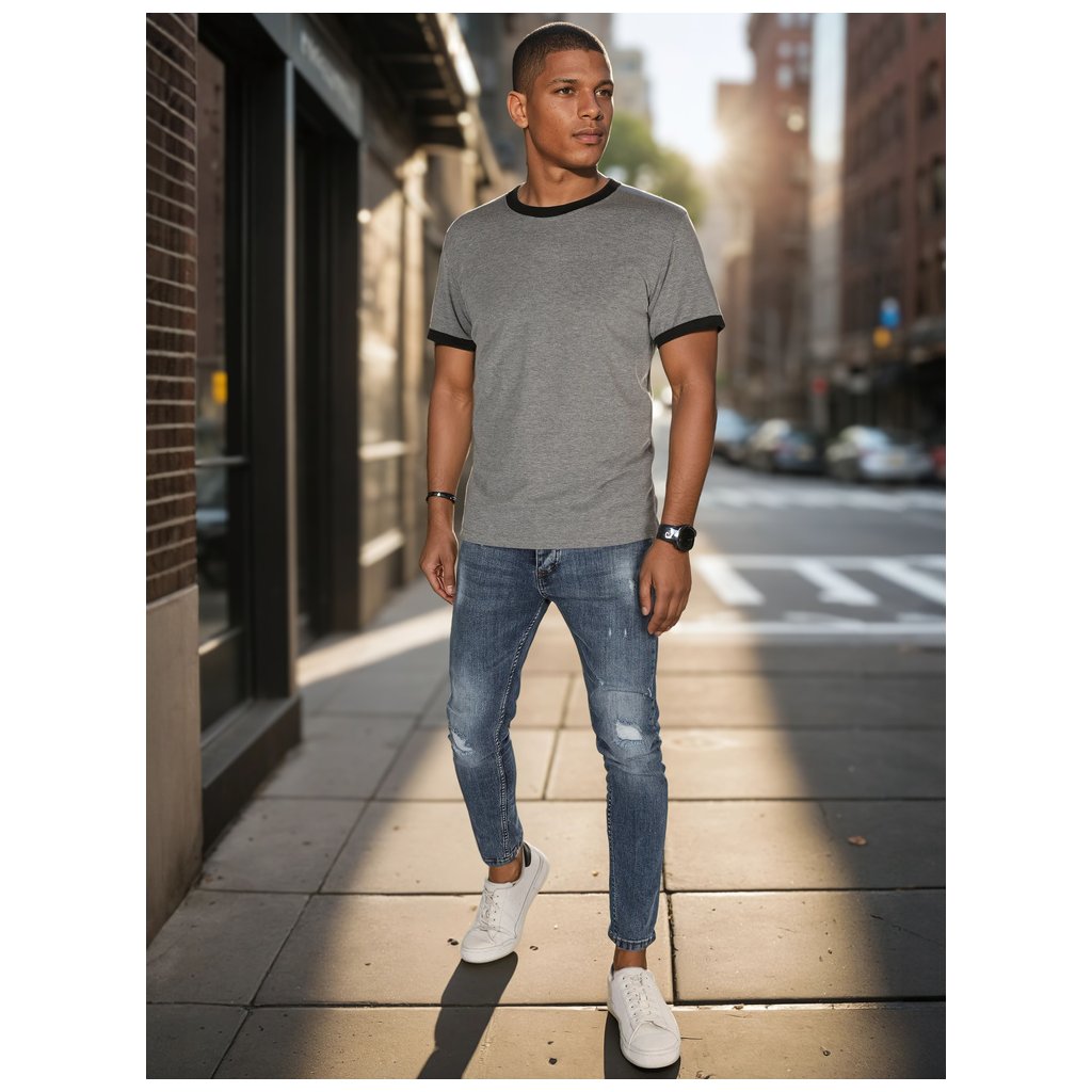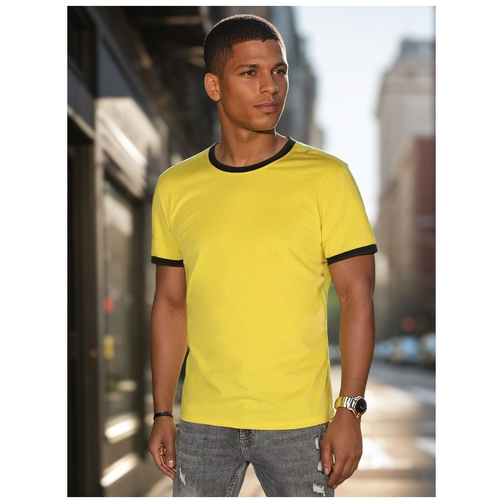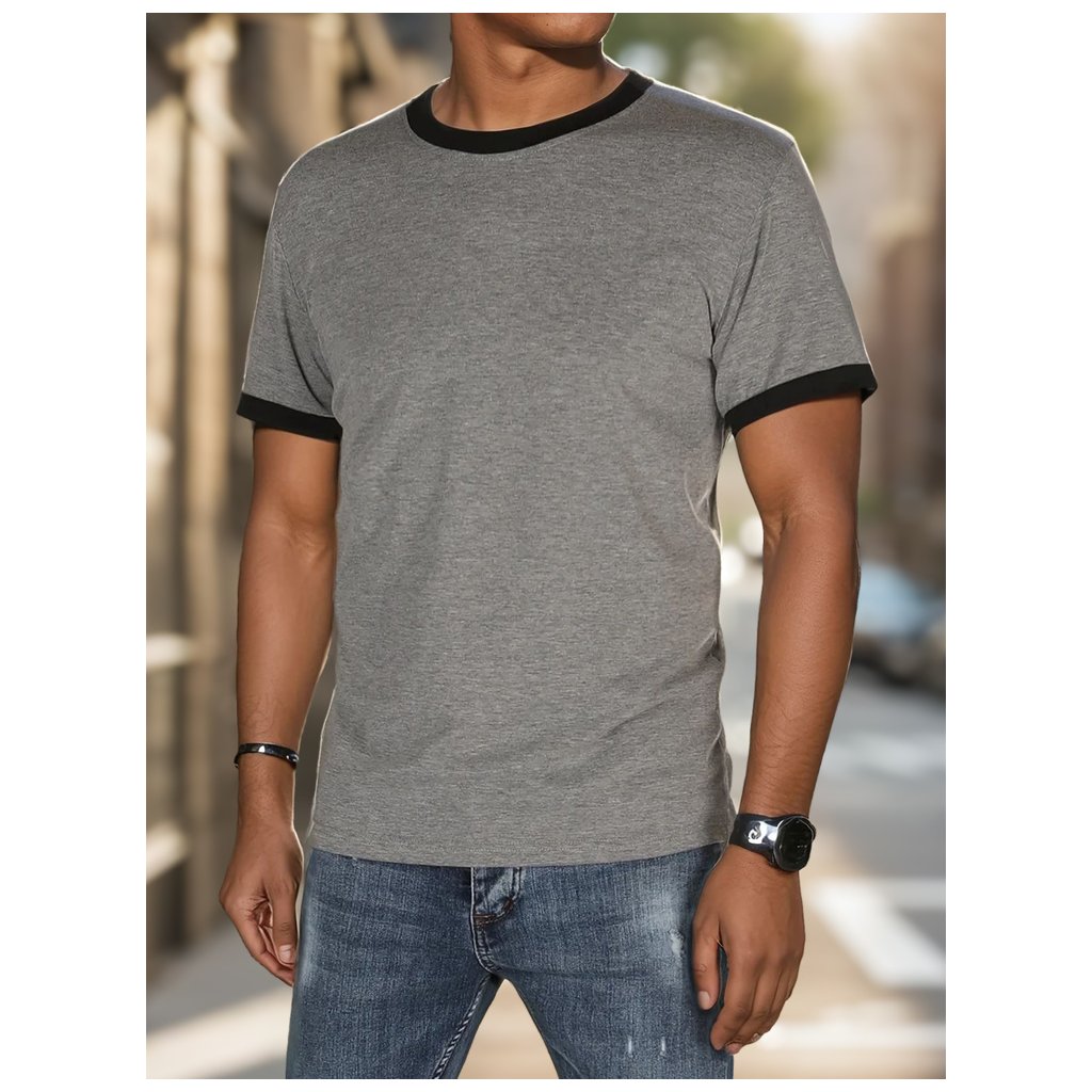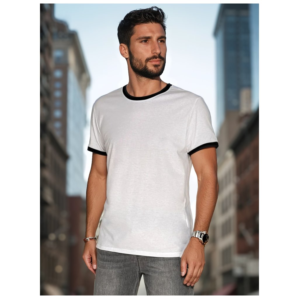 Toto základní pánské tričko s univerzálním střihem je ideální pro ty, kteří oceňují jednoduchost a pohodlí. Výstřih a manžety rukávů jsou zdobeny kontrastními pruhy, které dodávají tričku osobitý charakter. Je vyrobeno z měkké, prodyšné látky, je ideální pro teplejší dny. Hodí se k městskému i ležérnímu jarnímu outfitu.