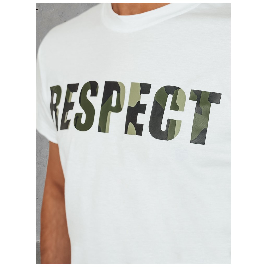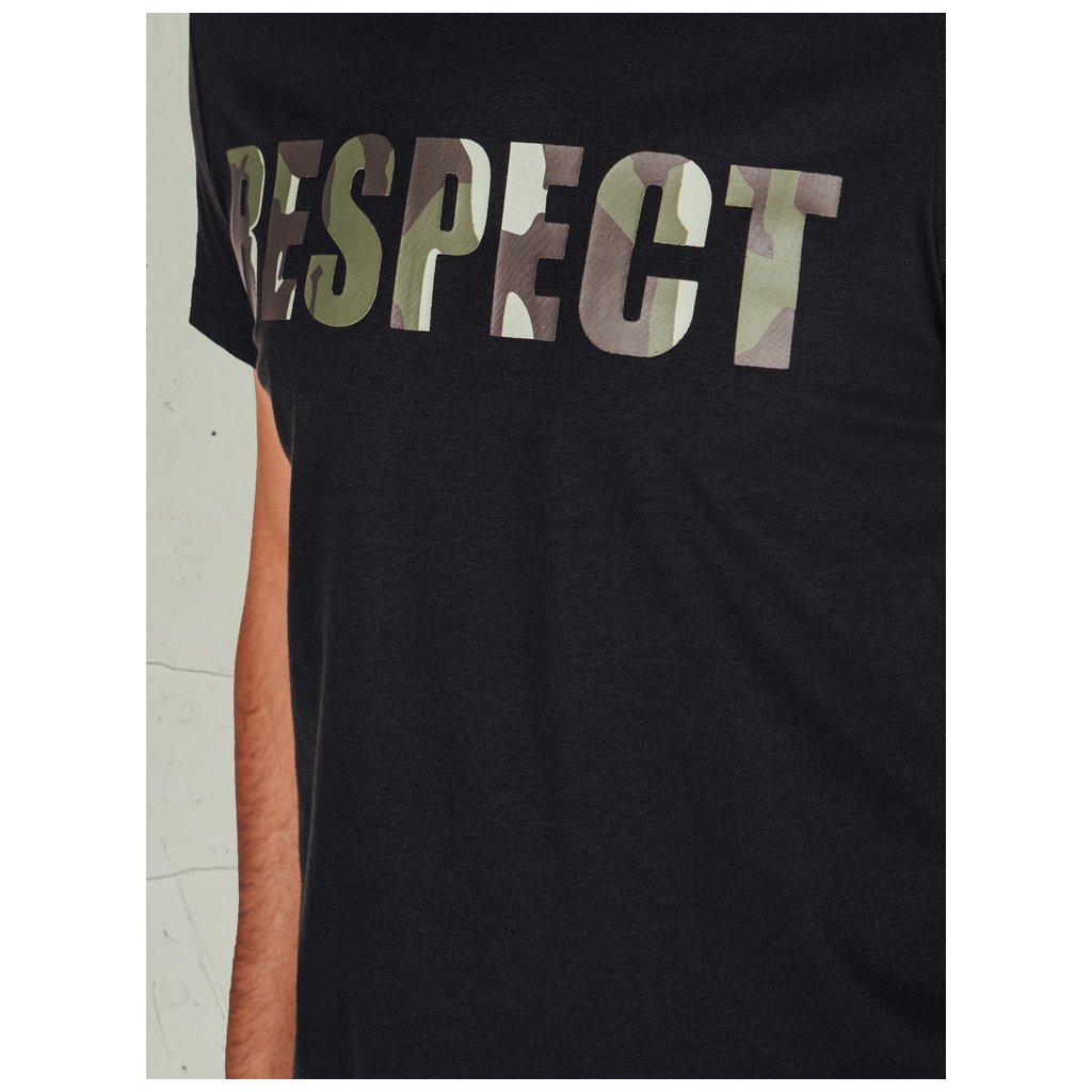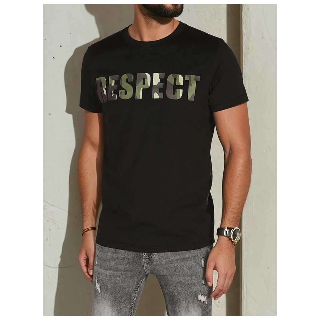 Pohodlné pánské tričko s krátkým rukávem a kulatým výstřihem, zdobené velkým potiskem "RESPECT" v módním vojenském stylu. Klasický design je ideální pro každodenní nošení. Hodí se k džínám, cargo kalhotám nebo cargo kraťasům. Perfektní volba pro jarní dny.