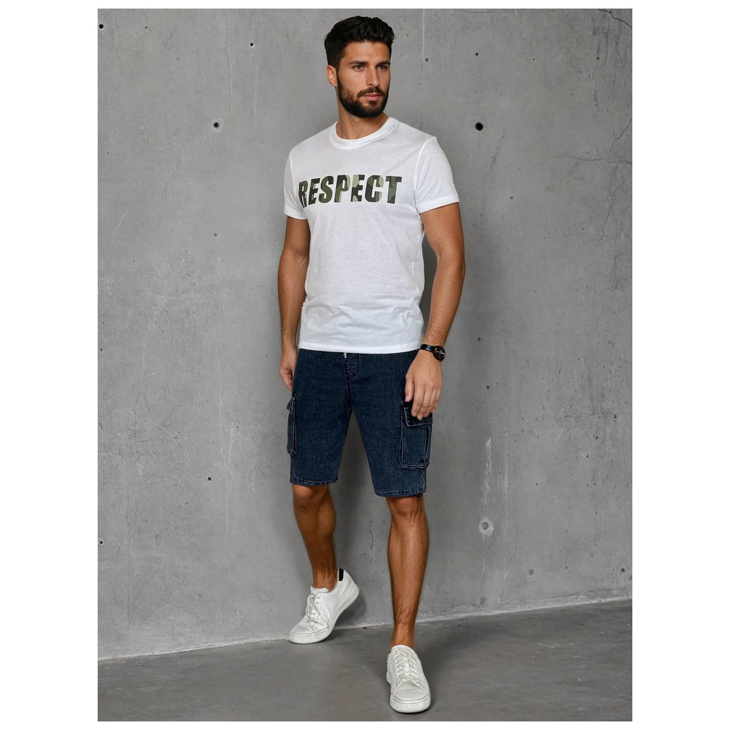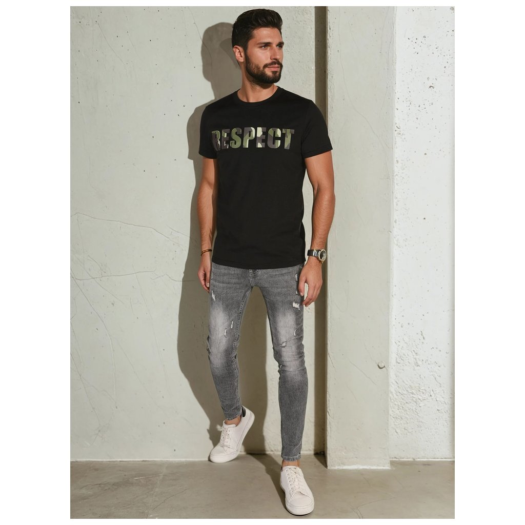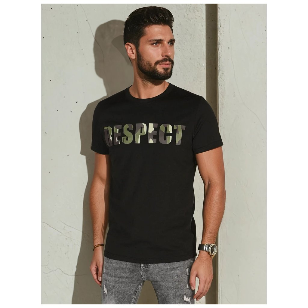 Pohodlné pánské tričko s krátkým rukávem a kulatým výstřihem, zdobené velkým potiskem "RESPECT" v módním vojenském stylu. Klasický design je ideální pro každodenní nošení. Hodí se k džínám, cargo kalhotám nebo cargo kraťasům. Perfektní volba pro jarní dny.