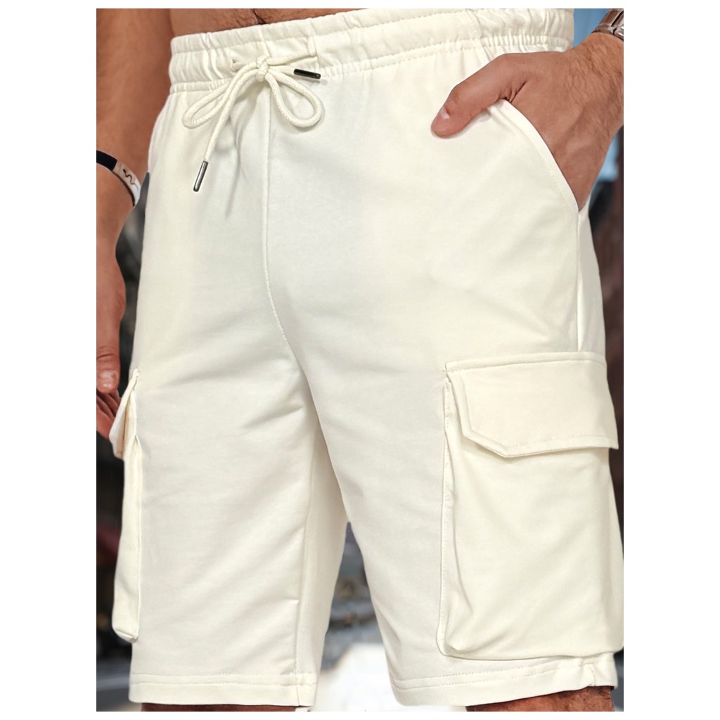 Tato pánská tepláková souprava kombinuje pohodlí s módním městským stylem. Tričko s krátkým rukávem má ozdobnou kapsu na rameni, zatímco cargo kraťasy mají čtyři kapsy a elastický pas s nastavitelnou šňůrkou. Vyrobeno z měkké látky, ideální pro jarní dny a každodenní městské aktivity.