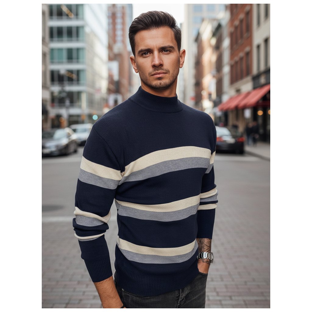 Pánský pruhovaný svetr Barva tmavě modrá DSTREET WX2126