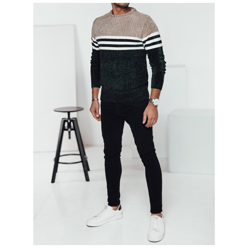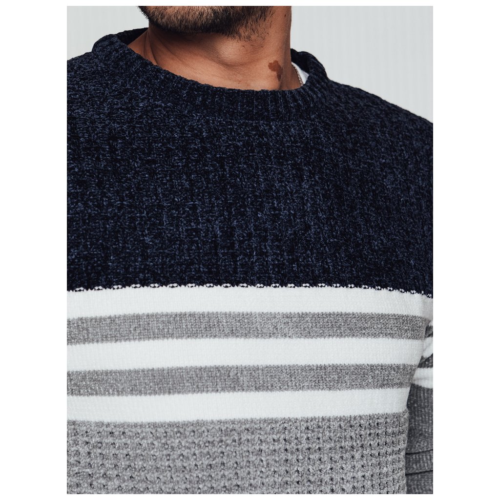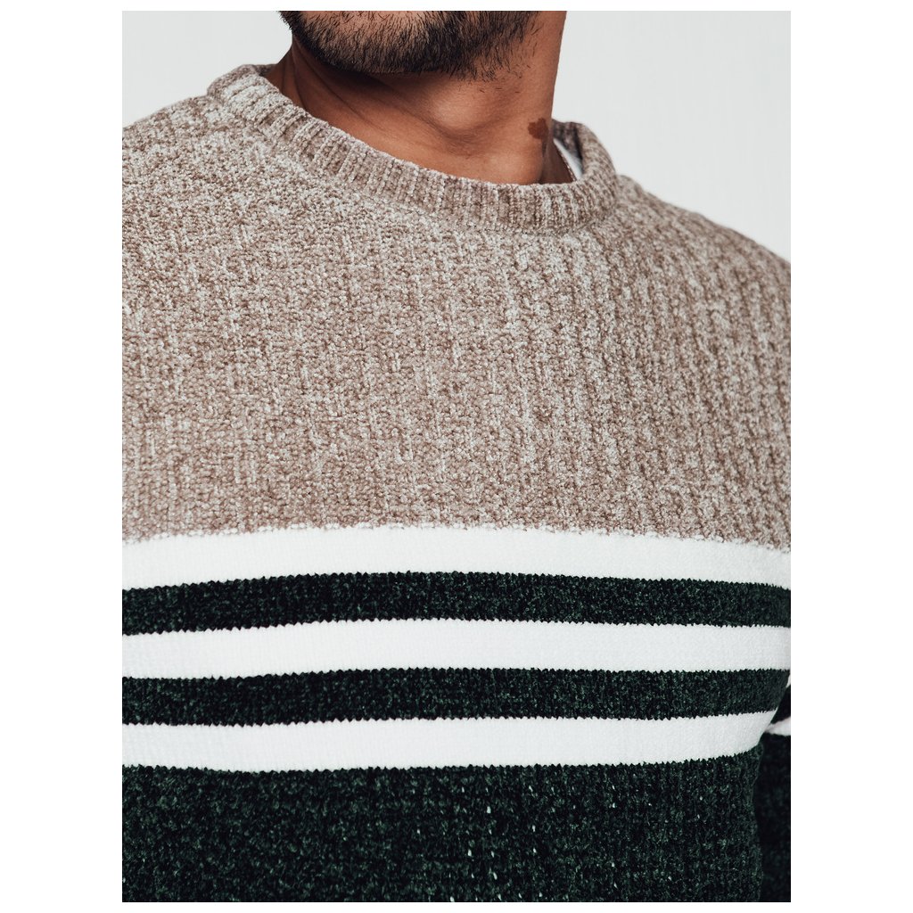 Teplý pánský svetr s výrazným pruhovaným vzorem, ideální pro chladnější dny. Vyroben z měkké a pružné pleteniny, poskytuje pohodlí a perfektní střih. Tento klasický kulatý výstřih se perfektně hodí k ležérním i elegantním outfitům a dodá každému vzhledu charakter.