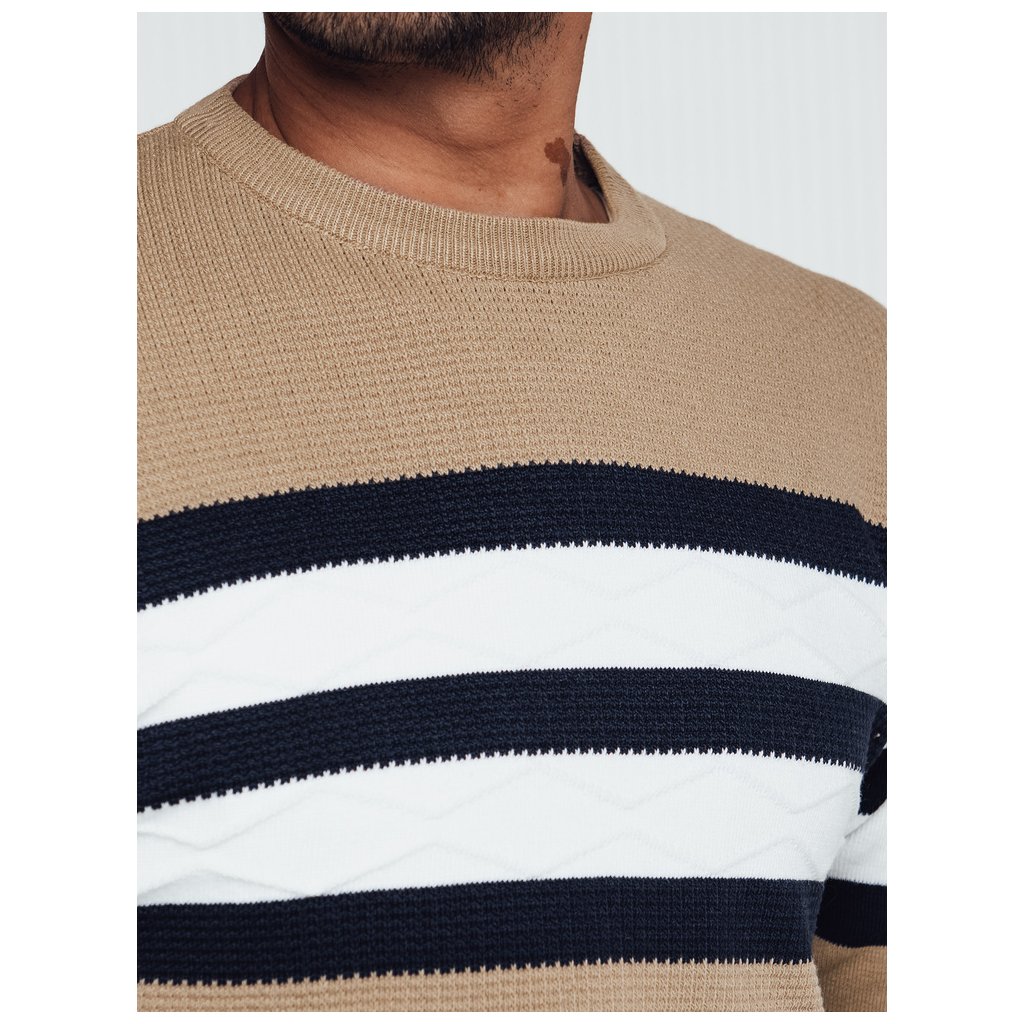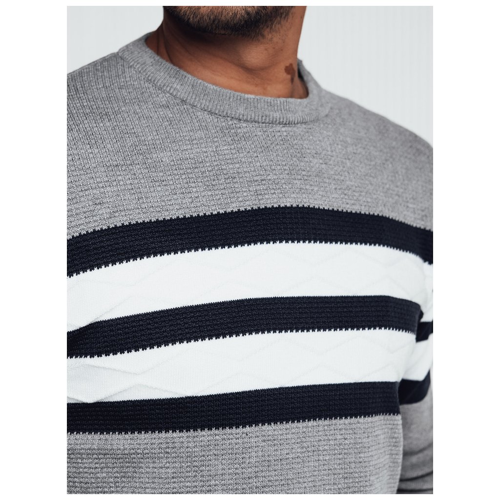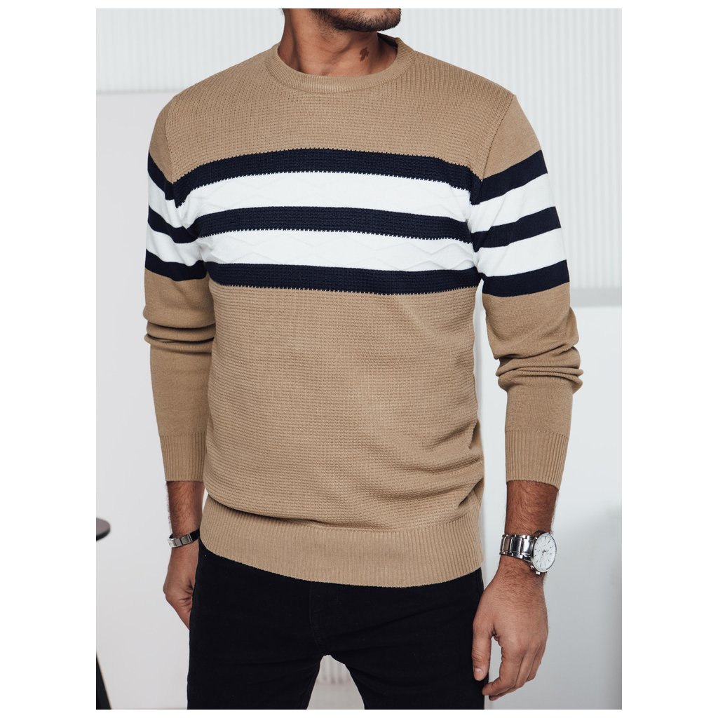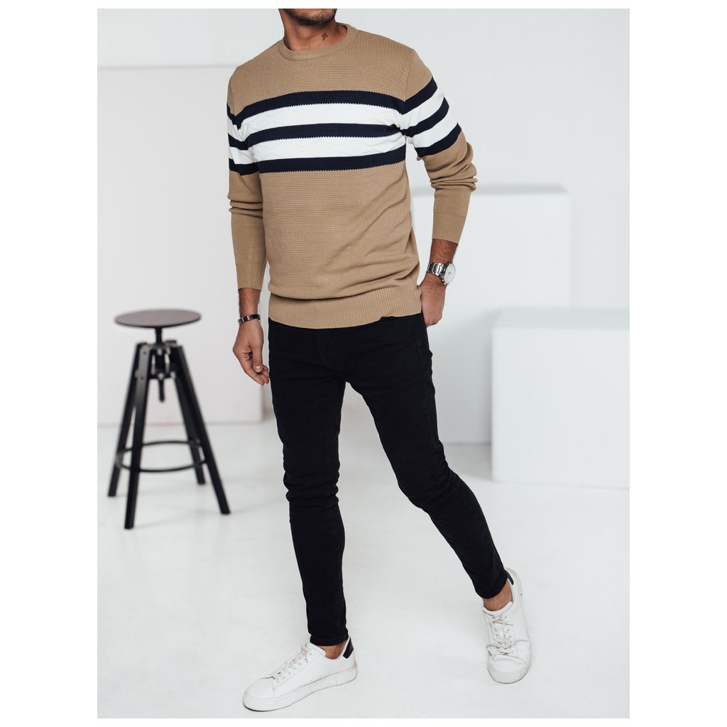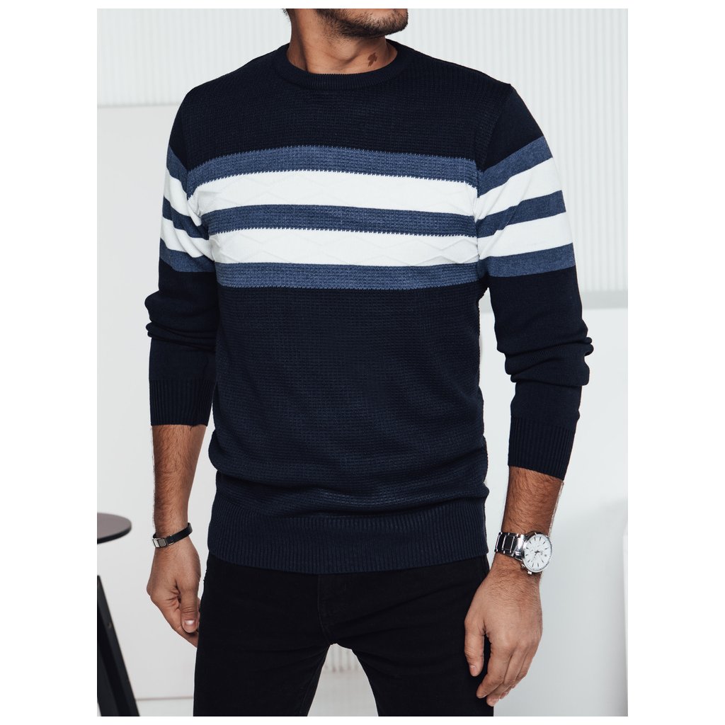 Tento elegantní pánský svetr s moderním designem je perfektní volbou pro chladnější dny. Vyroben z měkkého, příjemného úpletu, poskytuje pohodlí a volnost pohybu. Výrazné pruhy mu dodávají stylový nádech, díky čemuž je ideální jak pro každodenní nošení, tak pro formálnější příležitosti. Ideální k džínům nebo kalhotám.