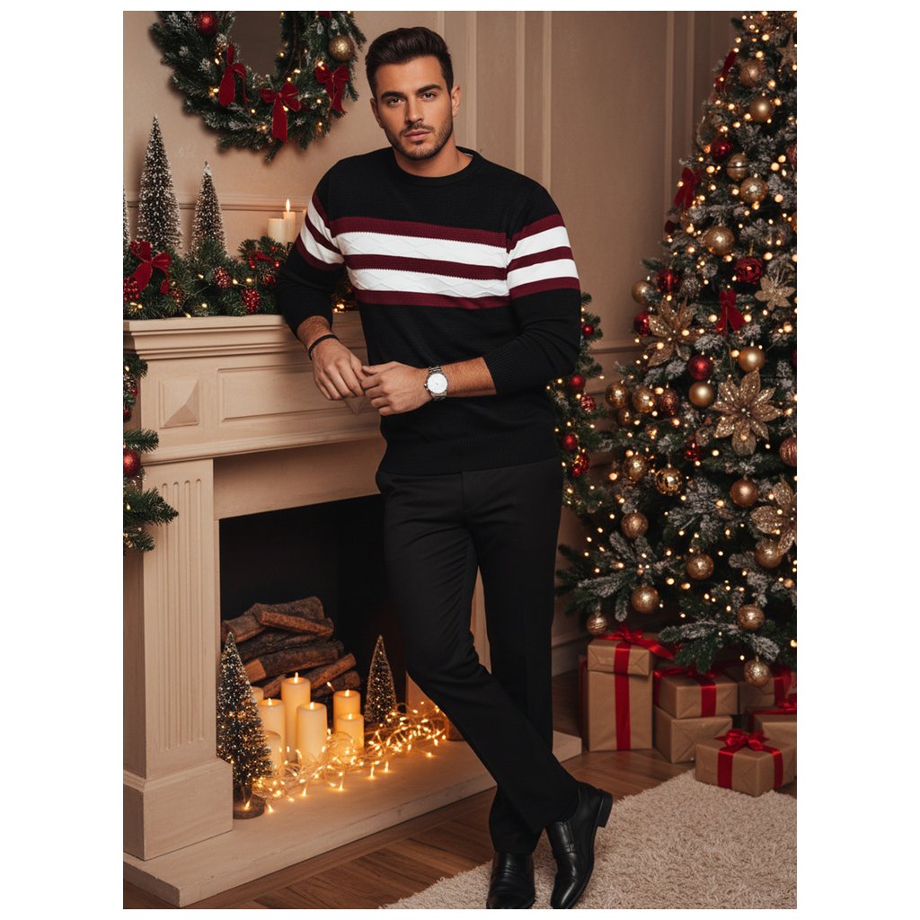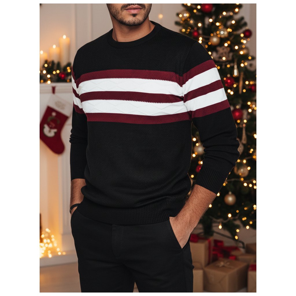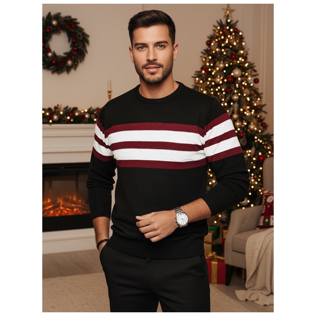 Tento elegantní pánský svetr s moderním designem je perfektní volbou pro chladnější dny. Vyroben z měkkého, příjemného úpletu, poskytuje pohodlí a volnost pohybu. Výrazné pruhy mu dodávají stylový nádech, díky čemuž je ideální jak pro každodenní nošení, tak pro formálnější příležitosti. Ideální k džínům nebo kalhotám.