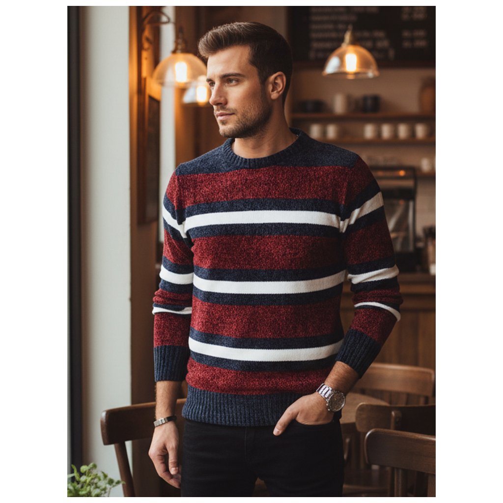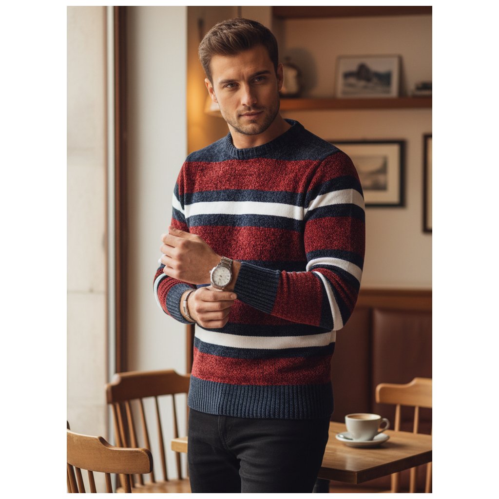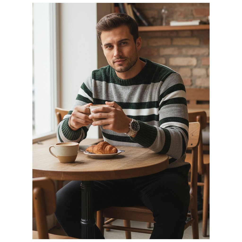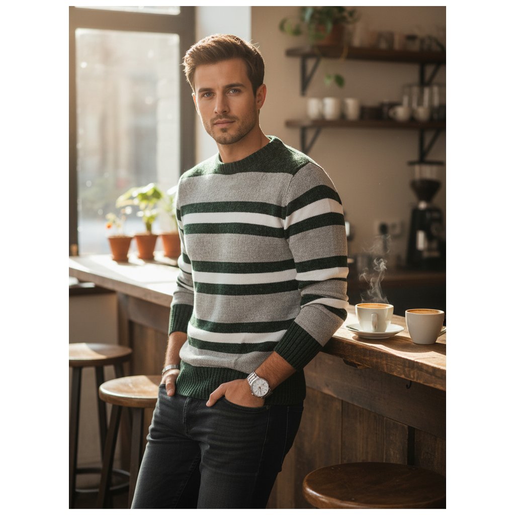 Tento pánský svetr s klasickými pruhy je nezbytností pro chladnější dny. Je vyrobený z příjemné látky a poskytuje pohodlí a teplo po celý den. Stylová barevná kombinace z něj dělá perfektní doplněk k různým outfitům – od ležérních až po elegantnější. Je mimořádně měkký na dotek, je ideální pro každodenní nošení, do práce nebo na setkání s přáteli. Hodí se k džínům i chino kalhotám a dodá vašemu outfitu jedinečný nádech.