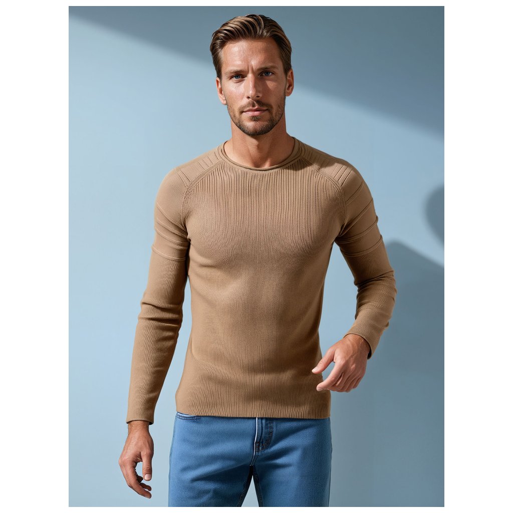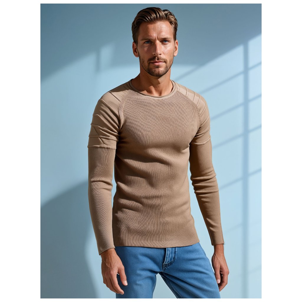 Stylový pánský svetr, který zdůrazňuje eleganci a všestrannost. Vyroben z vysoce kvalitního úpletu, kombinuje klasický střih s moderními úpravami. Jemné prošívání ramen dodává charakter, zatímco měkká, pružná látka zajišťuje celodenní pohodlí. Ideální pro každodenní styling s džínami nebo elegantní outfity s chino kalhotami.