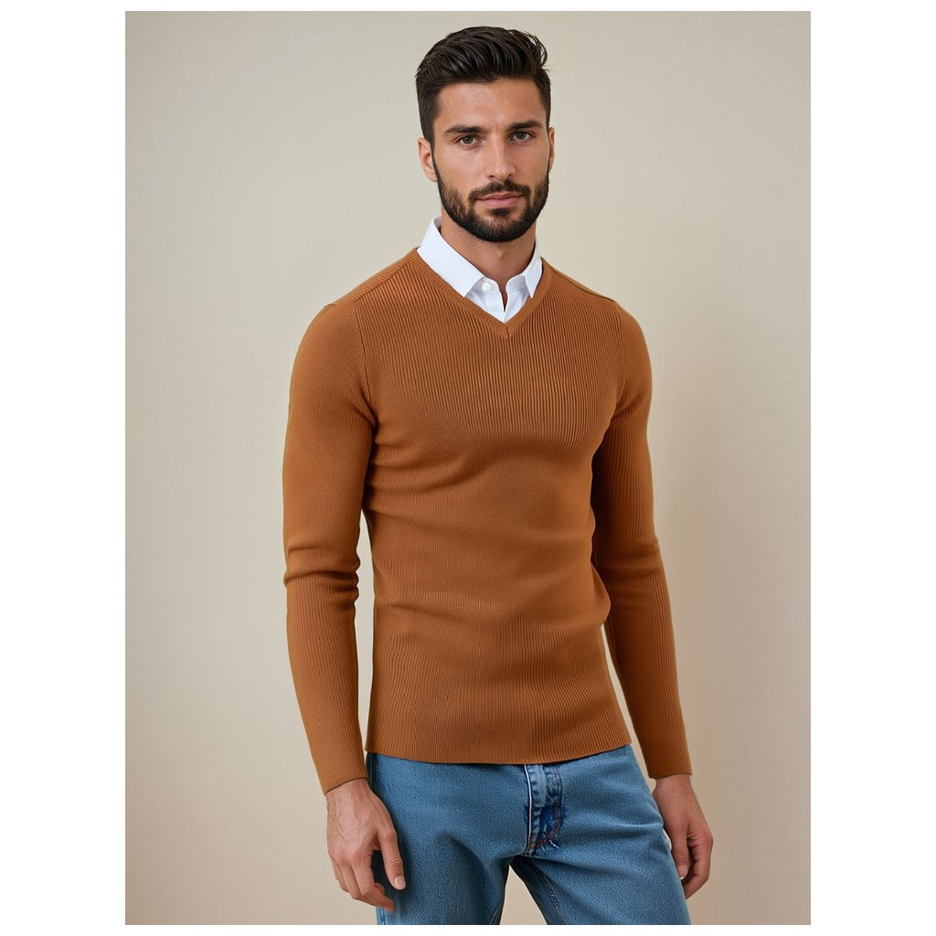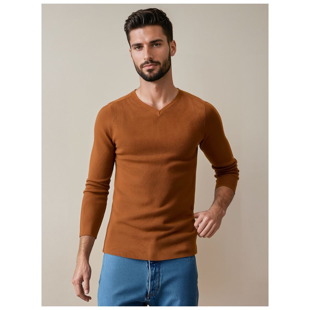Pánský svetr s decentním výstřihem do V, který dokonale lichotí postavě. Pružný materiál zajišťuje pohodlí a minimalistický design doplní jakýkoli outfit, ať už pro každodenní nošení nebo pro zvláštní příležitosti. Tento praktický a stylový kousek dodá každému outfitu charakter.